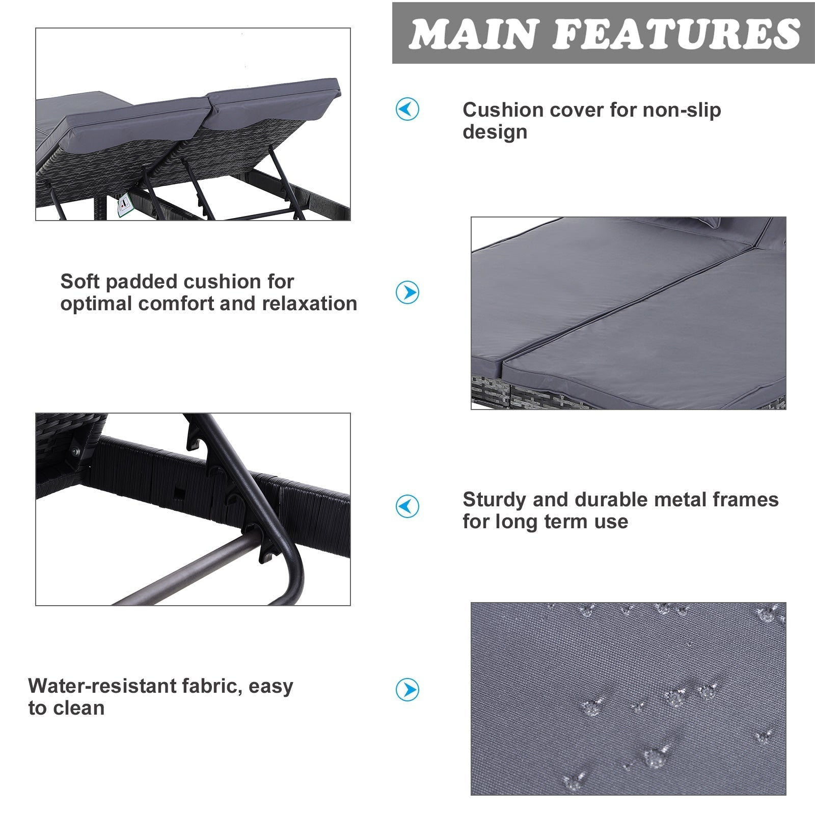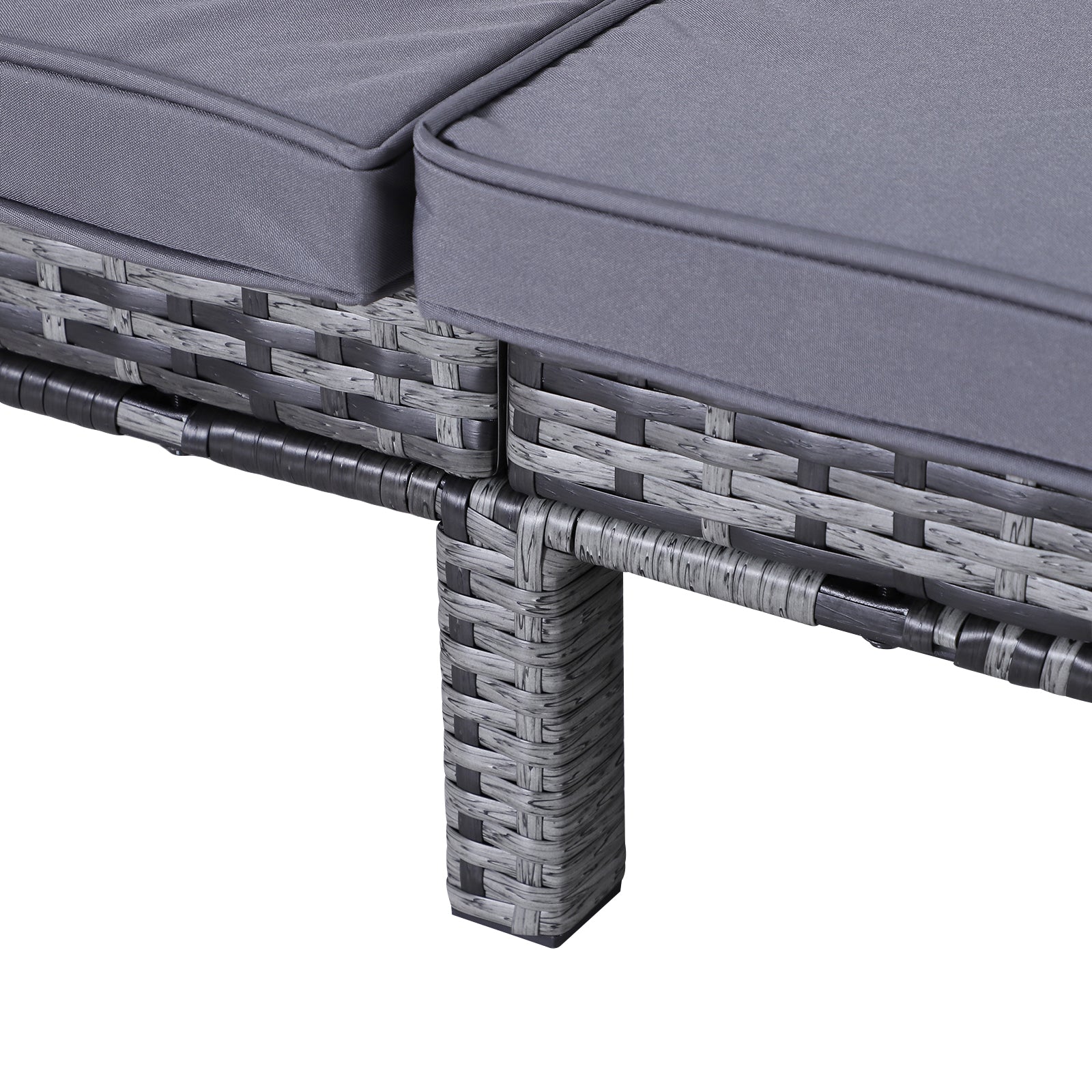 2 Seater Rattan Lounger Adjustable Double Chaise Chair Loveseat w/ Cushion - Grey