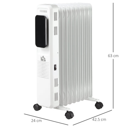 Keep perfectly heated with this oil filled radiator from HOMCOM. Be in complete control of the temperature by choosing high, medium or low and adjust the thermostat between 15-35?. Cut costs on energy bills by selecting the ECO mode. The oil radiator will turn off if it overheats or falls over for extra safety. Select your ideal setting from the comfort of your sofa with the remote control. Move with minimum fuss using the wheels or handle - no space will become cold.