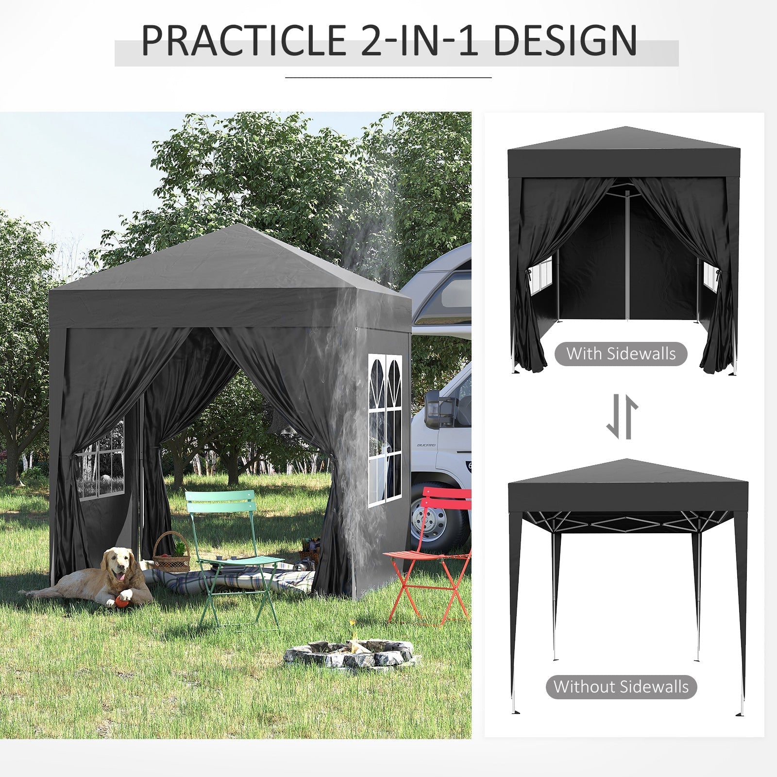 2m x 2m Garden Pop Up Gazebo Marquee Party Tent Wedding Awning Canopy New With free Carrying Case Black + Removable 2 Walls 2 Windows
