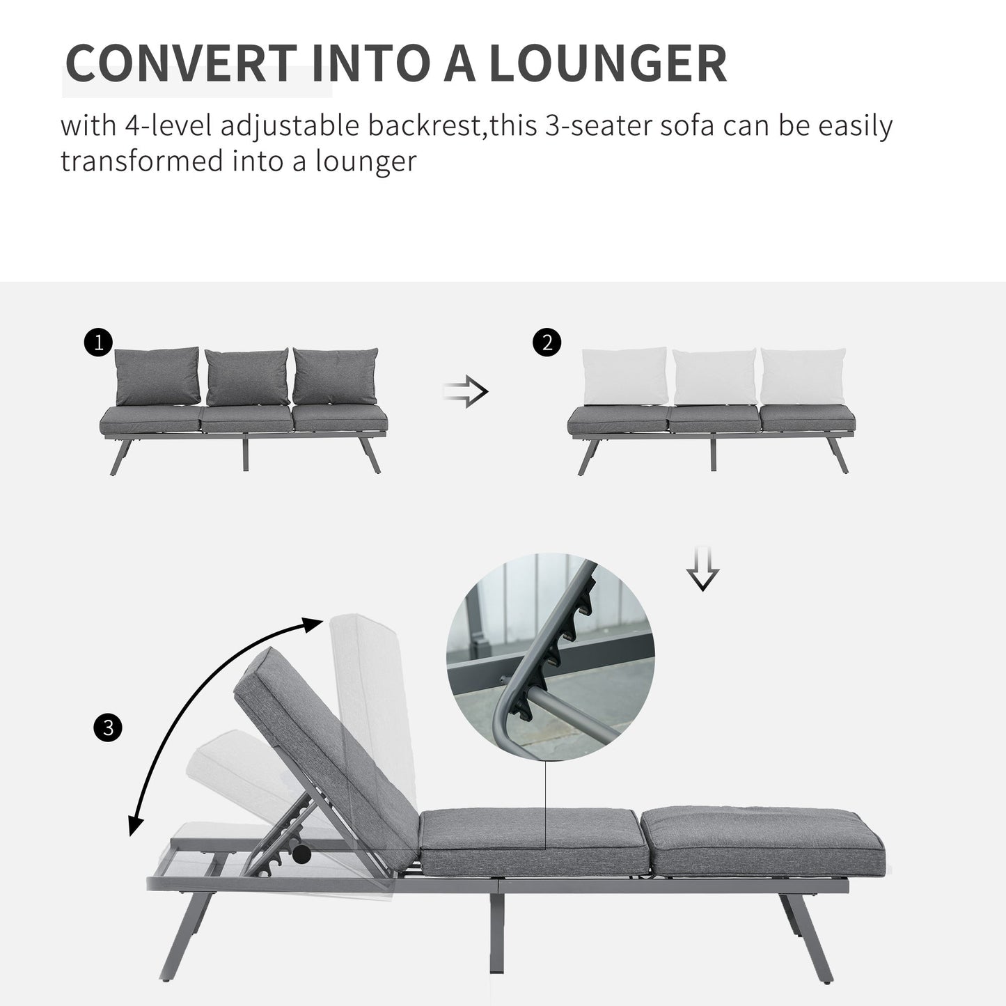 3-Piece Garden Seating Set w/ Convertible Sofa Lounge Table Padded Cushions Outdoor Patio Furniture Couch Grey