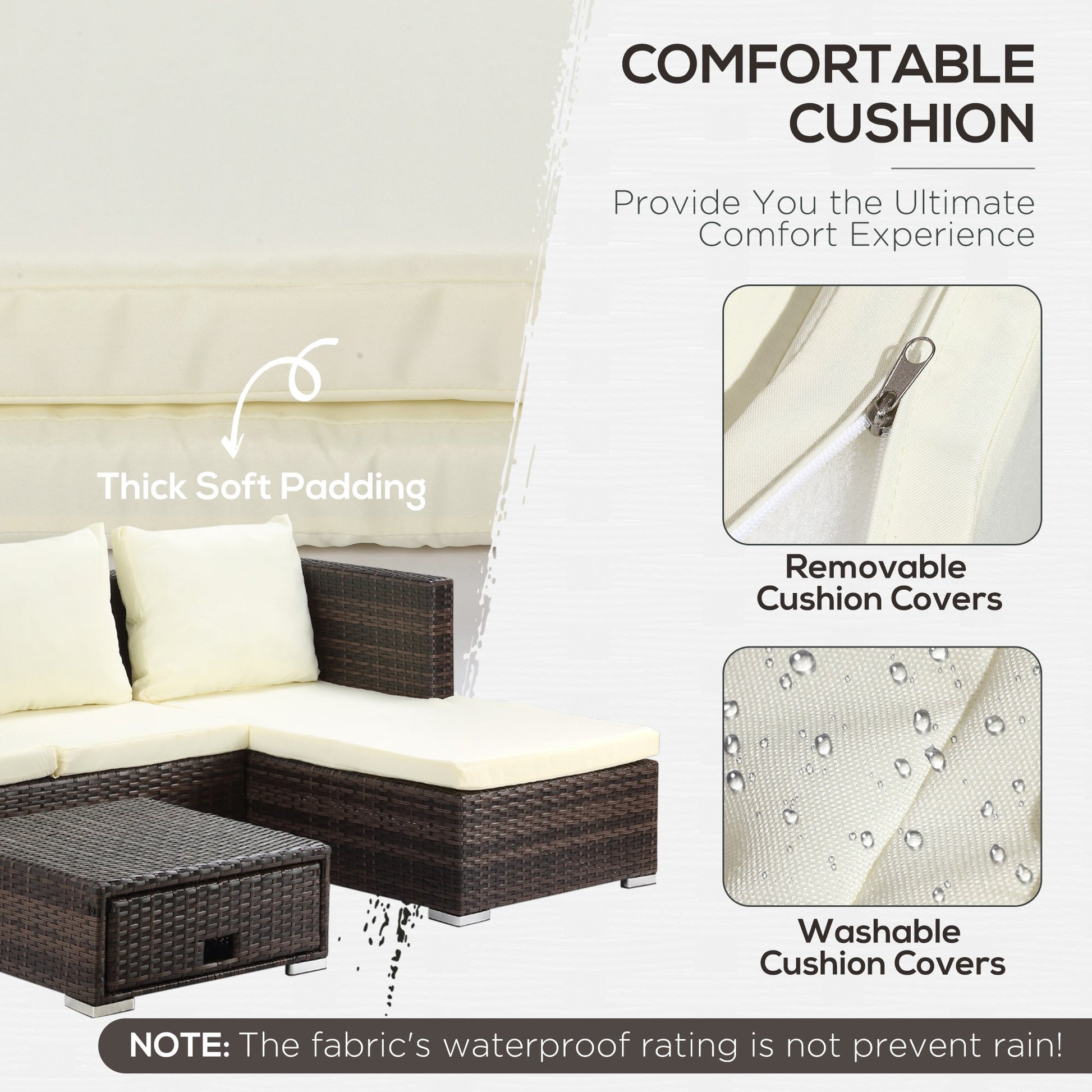 3-Piece Rattan Garden Furniture Storage Sofa Set 4 Seater Wicker Coffee Table Conservatory Sun Lounger Reclining Set Outdoor Weave with Cushion Brown