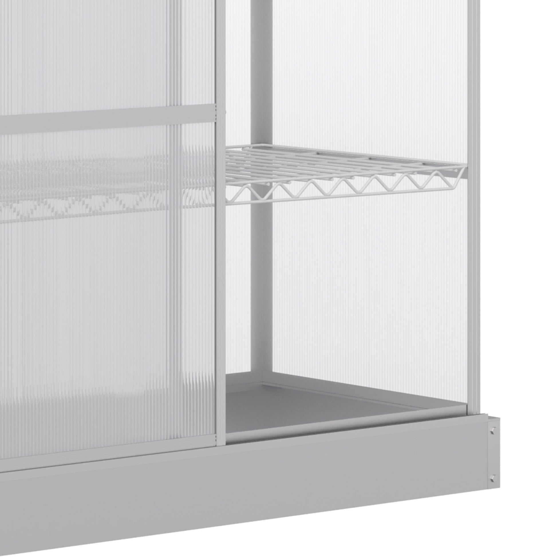 - Polycarbonate panels for protection, whilst allowing 90% light in for healthy growth