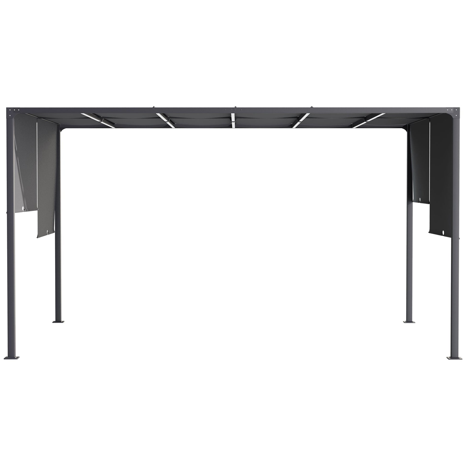 Extend the shaded garden space in your garden practically anywhere, day or night. This Outsunny 3 x 4m pergola canopy offers an open space, with a retractable roof to shield at different positions. Ten LED solar-powered light strips to create a soft glow when it gets darker. Metal frame for a strong structure, with accessories included to pin it to the ground - extra stability.