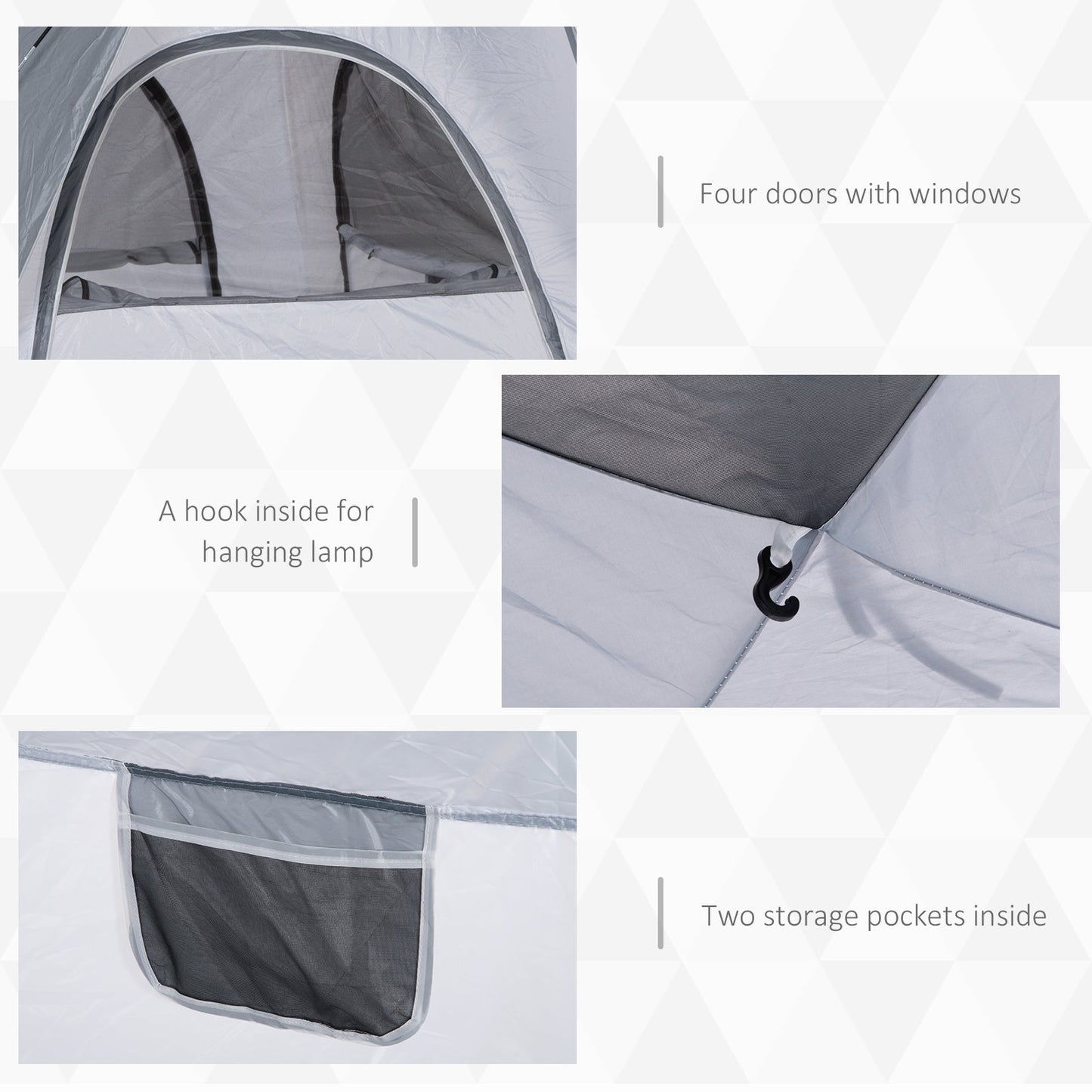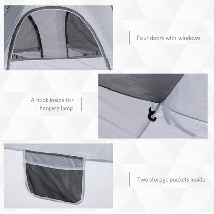 Camp with plenty of space - do it with this Outsunny 4 person tent. It's easy to unfold and set up: featuring pre-attached poles and a hydraulic pressure mechanism, the family tent pops open up easily for a fuss-free set up - also easy to fold up too. The 190T polyester shell protects against light weather for use from Spring to Autumn. This 4 man tent features three windows to let air in, with the large front door making it easy to enter and leave. Comes with carry bag and eight ground stakes.