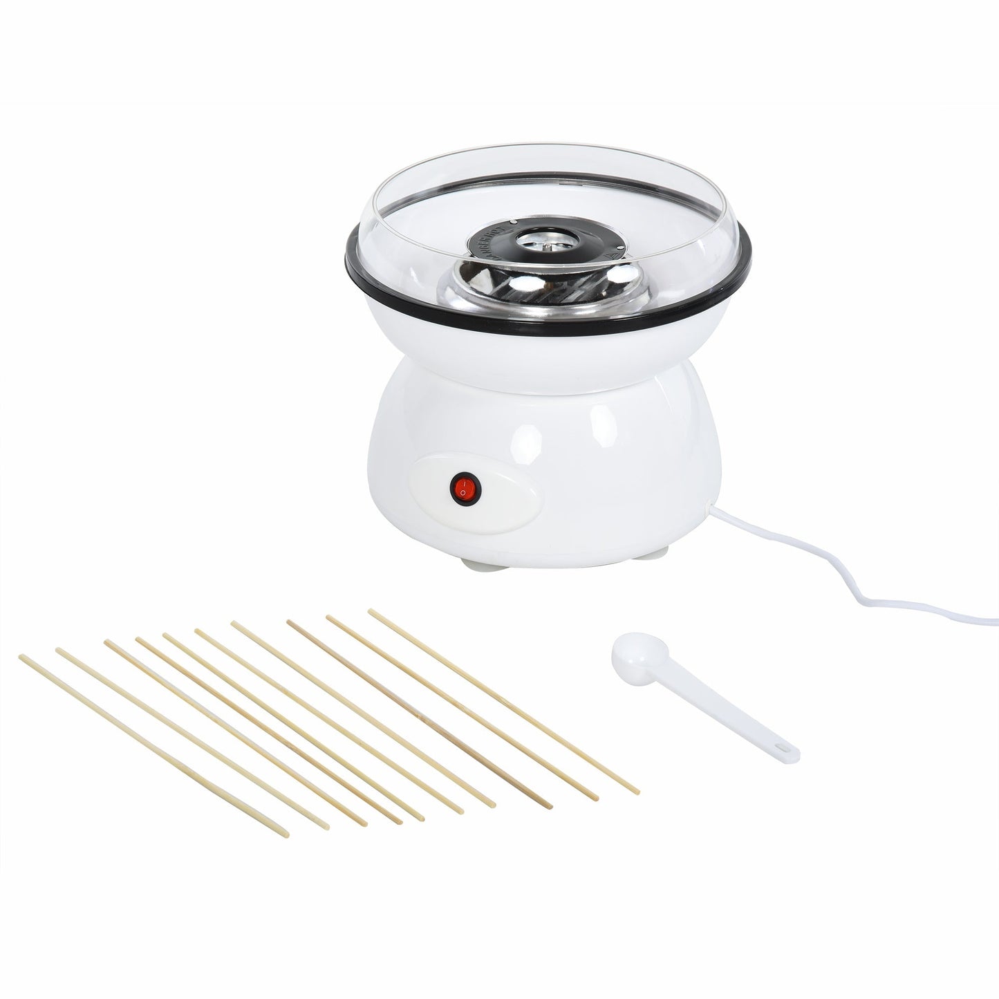 Bring those sweet childhood memories back with this candyfloss machine from HOMCOM. Clean white in colour, it's extremely easy to use, making it suitable for both children and adults: simply load the ingredients and press the button for your candyfloss to start forming, taking around two minutes in total. The body is made from metal for strength, and the plates are coated with a non-stick surface to prevent sugar from sticking. Package comes with 10 bamboo sticks,a spoon and plastic cover for when not in use. The perfect piece for parties, or for when you've got a sweet craving at home.
