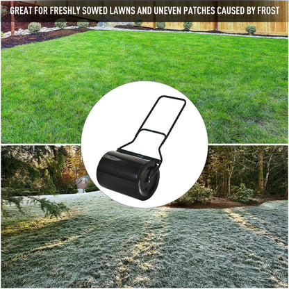 50cm Steel Garden Lawn Roller Push Pull w/ Fillable Cylinder Water Sand Plug Lawn Flatten Seed Sow Rolling Drum w/ Handle