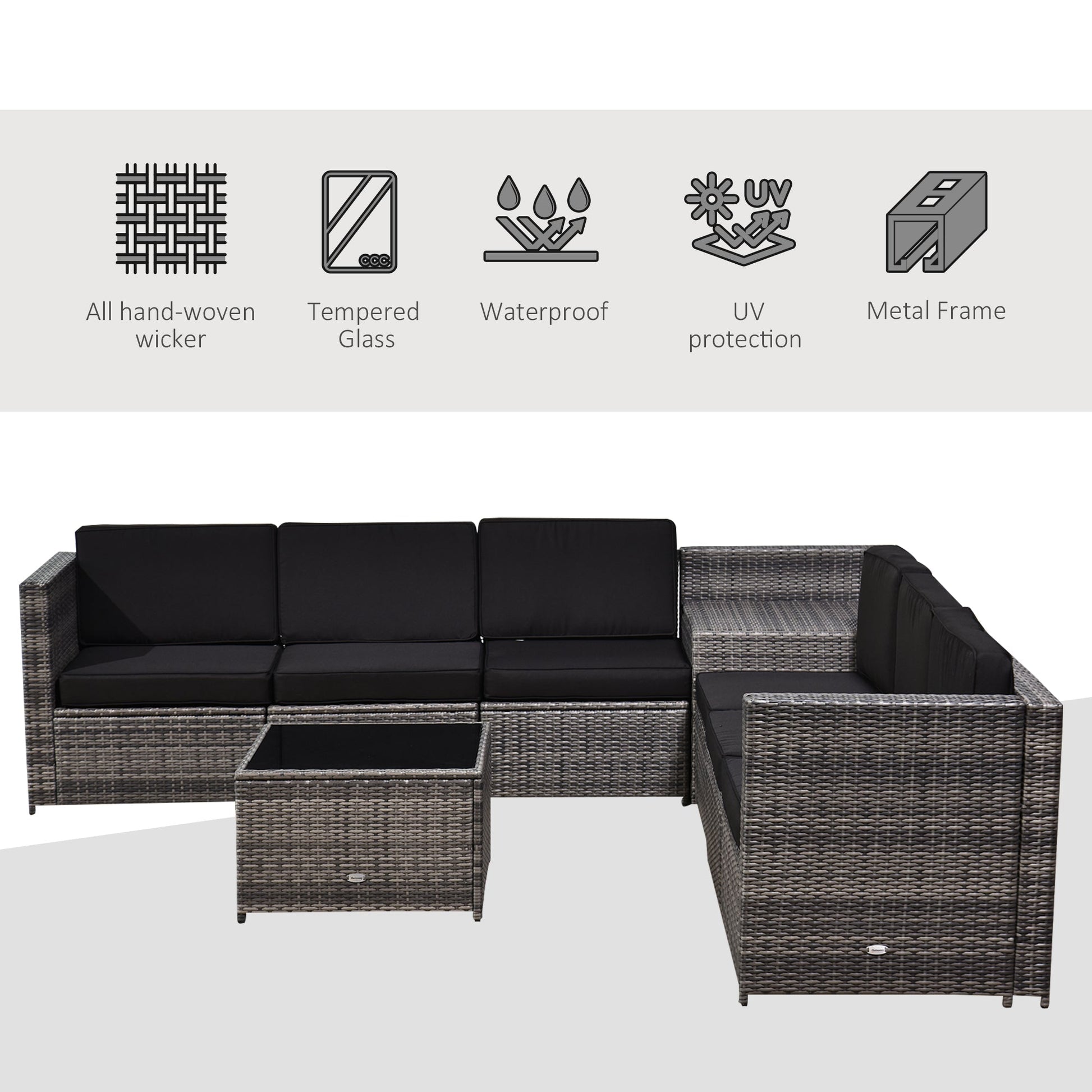6 Seater Rattan Sofa Furniture Set W/ Cushions