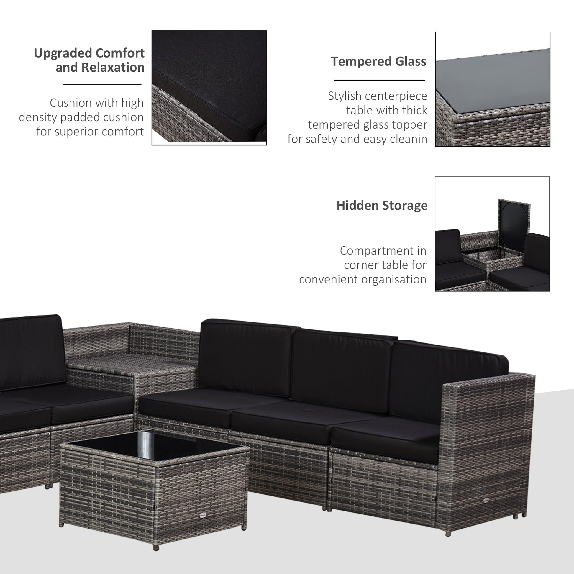 Make the most of the warm weather with this eight-piece outdoor rattan garden furniture set from Outsunny. Its open design is also great for combining two or more sets together in your café, restaurant or business to allow you to cater to larger seating numbers and expanding your outside business revenue. Finished with a hidden storage compartment in the corner table, you’ll never leave the area in a mess, making it ideal for those with busy lifestyles and little time to spare.
