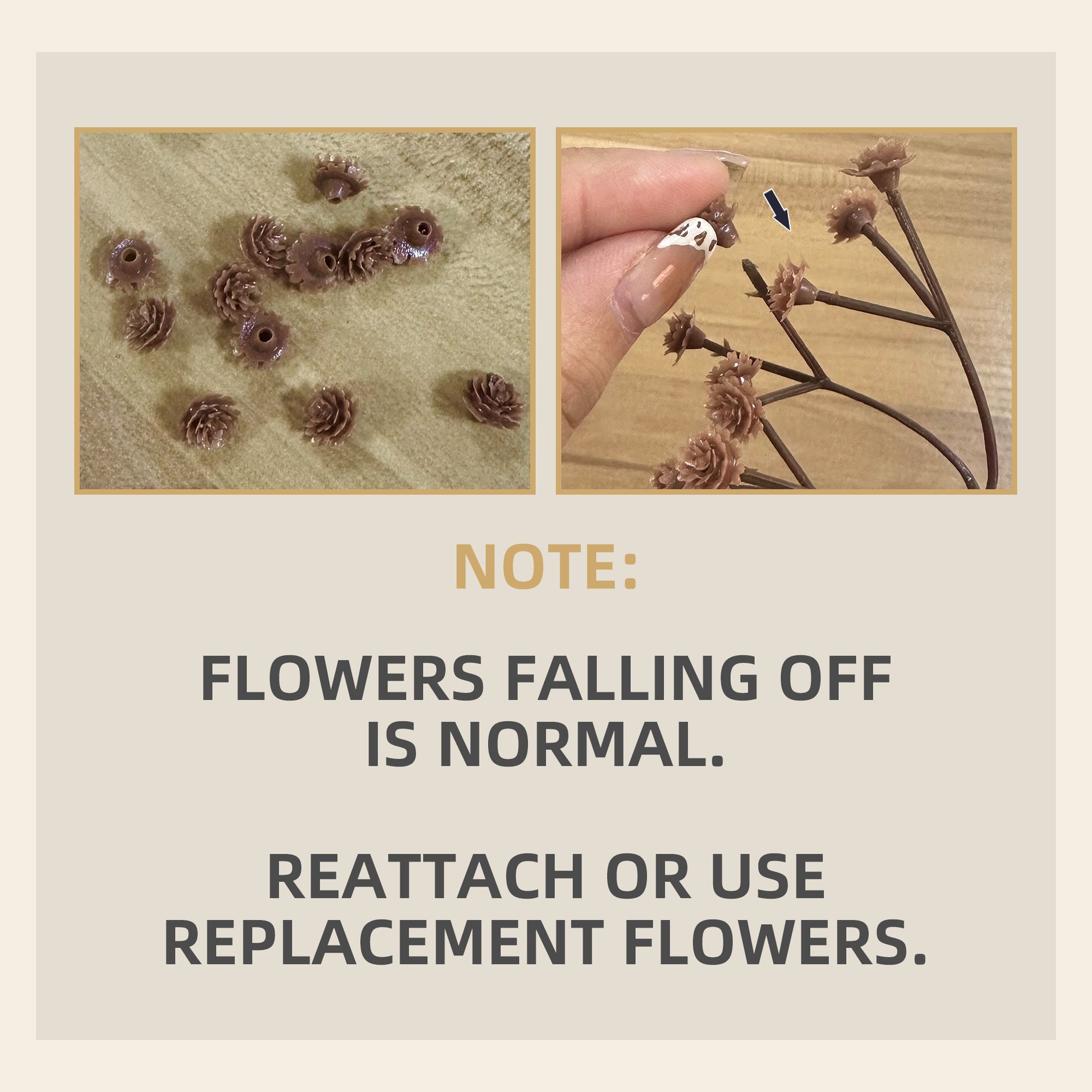 Note: Flowers falling off is normal. Reattach or use replacement flowers.