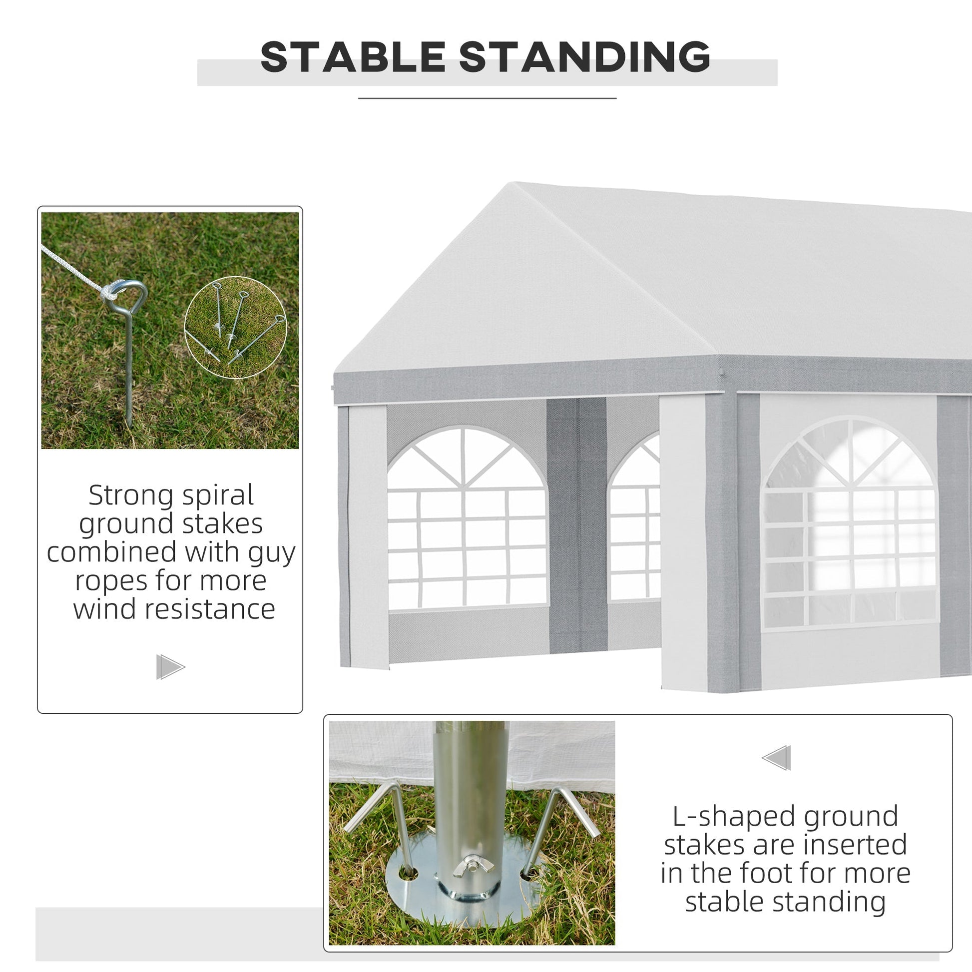 For your outdoor gatherings this season, say hello this cool stripey 8 x 4m marquee gazebo, from Outsunny. A galvanised steel frame means a strong, sturdy core; it's fitted with a thick plastic canopy for a safe inner shelter. The roof shields you inside from direct sunlight and light wind and rain - ideal for keeping you and guests sheltered when needed. All the walls can be taken off when you want to open up on hotter days - with windows to allow sunlight in when they're fixed in place.