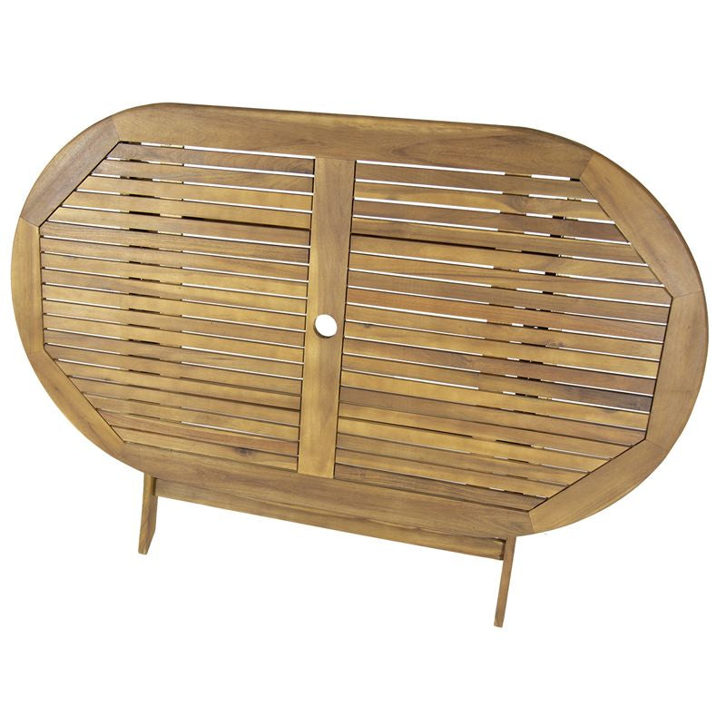 Built with sustainably sourced acacia wood, this table will make a pleasant addition to your garden. The oil coating ensures it will keep its natural colour and when not in use, its foldable structure means its easily stored away.