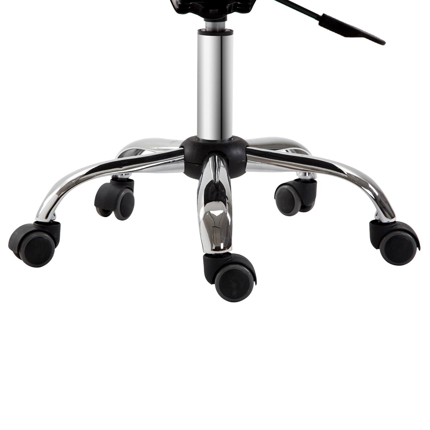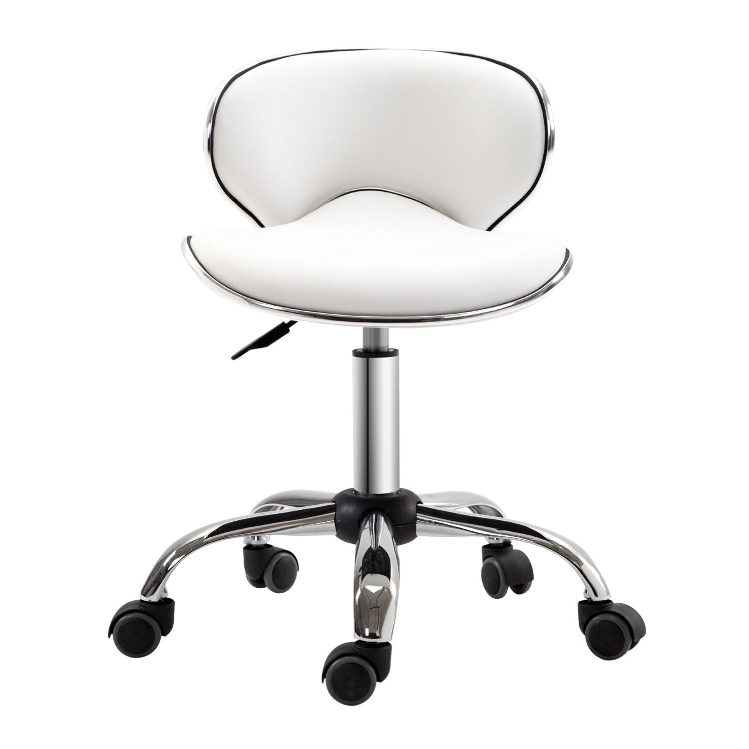 This HOMCOM workshop stool puts you at just the right height, helping to create ideal working environment. The firm back keeps your spine in proper form and the padded seat cushion gives you the comfort for the longer durations. With fives wheels, this hairdressing chair is easy to scoot around or slide around the working area. The polished chrome base and sleek design is ideal for most décor.