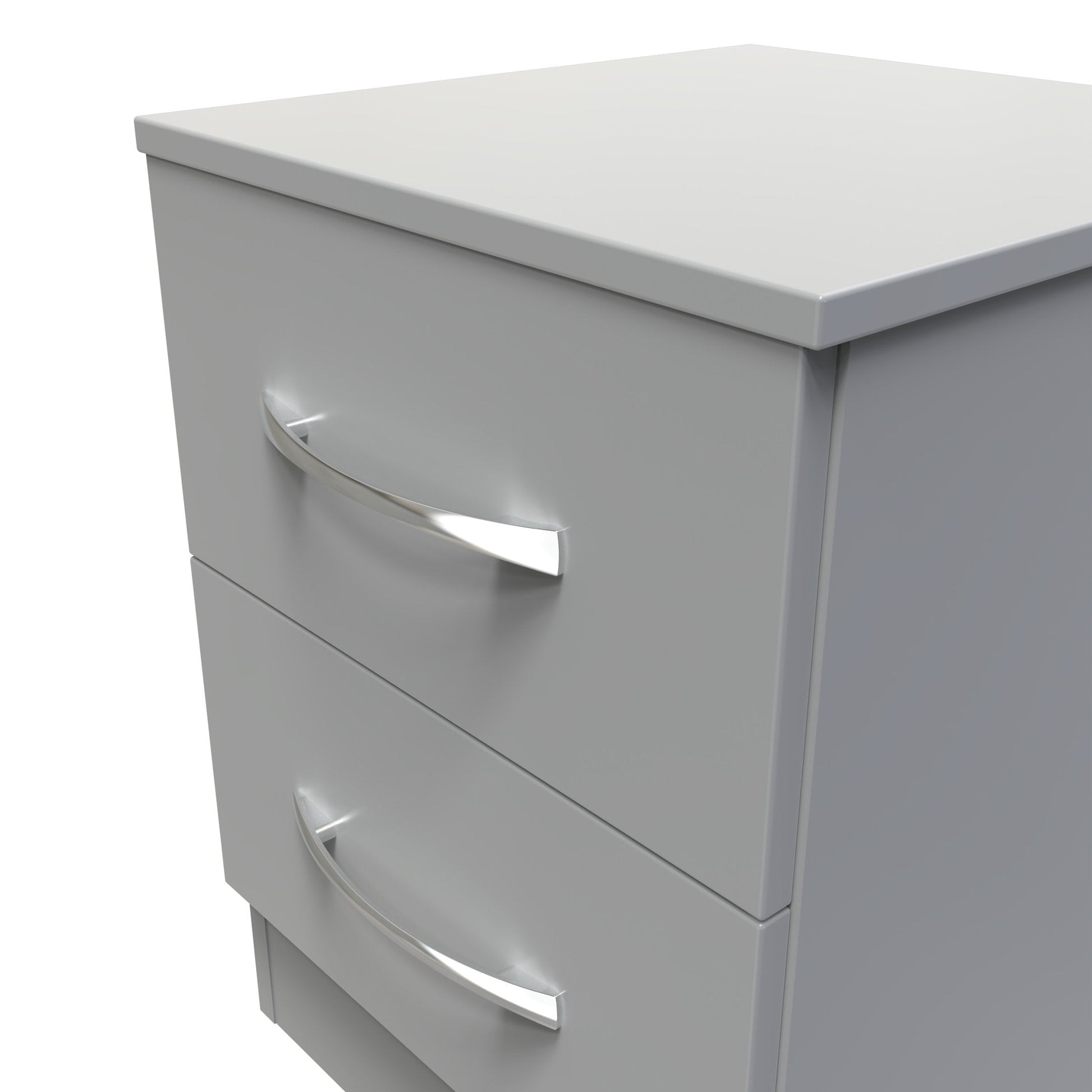 This 2 drawer bedside cabinet is practical and stylish. Perfect for any bedside or as a free standing storage unit. A great-value furniture range with a sleek classic look and feel that's just right for any interior. The simple, no-fuss design features clean lines and stylish chrome handles. A timeless design that will withstand the changes of fashion. All our furniture is made to order in the United Kingdom, to the highest quality. It is delivered within 10 working days direct to your location of choice by one of our two man delivery teams, and comes fully assembled (although legs may be removed to prevent damage in transit). Part of the Avon Collection.