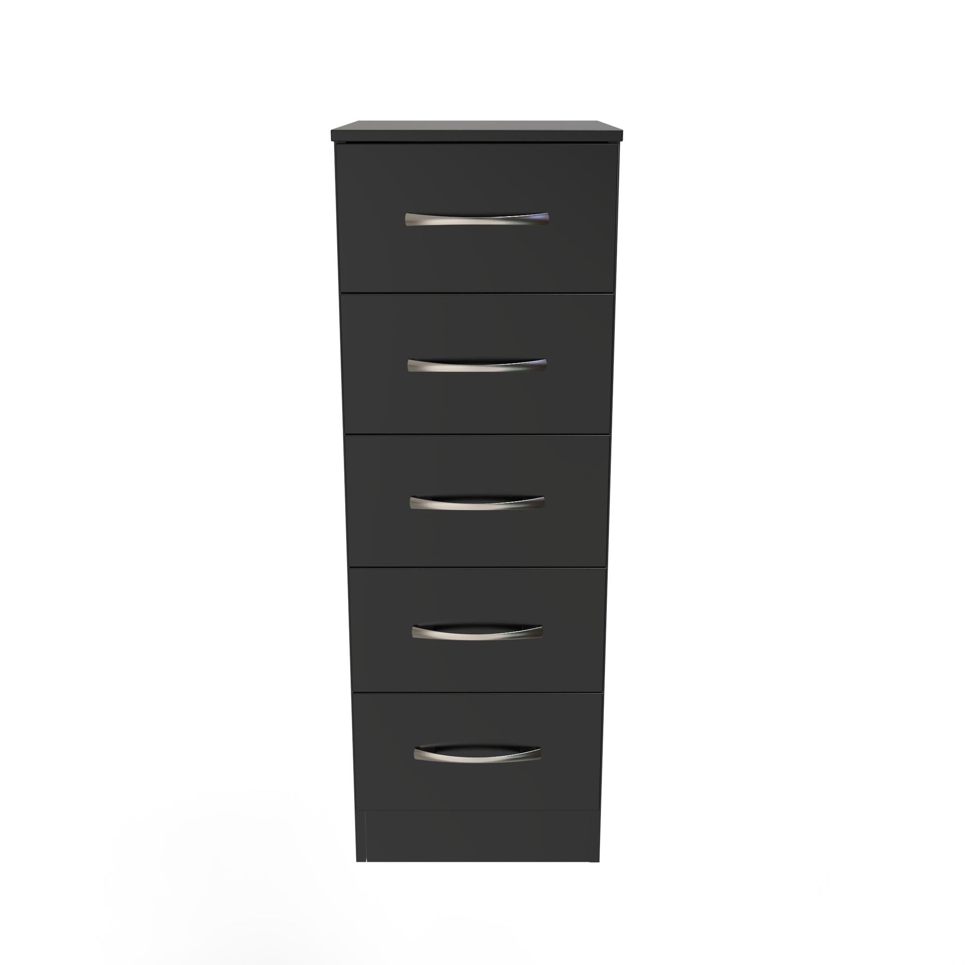 Avon Tall Slim Chest of Drawers Black 5 Drawers 108cm