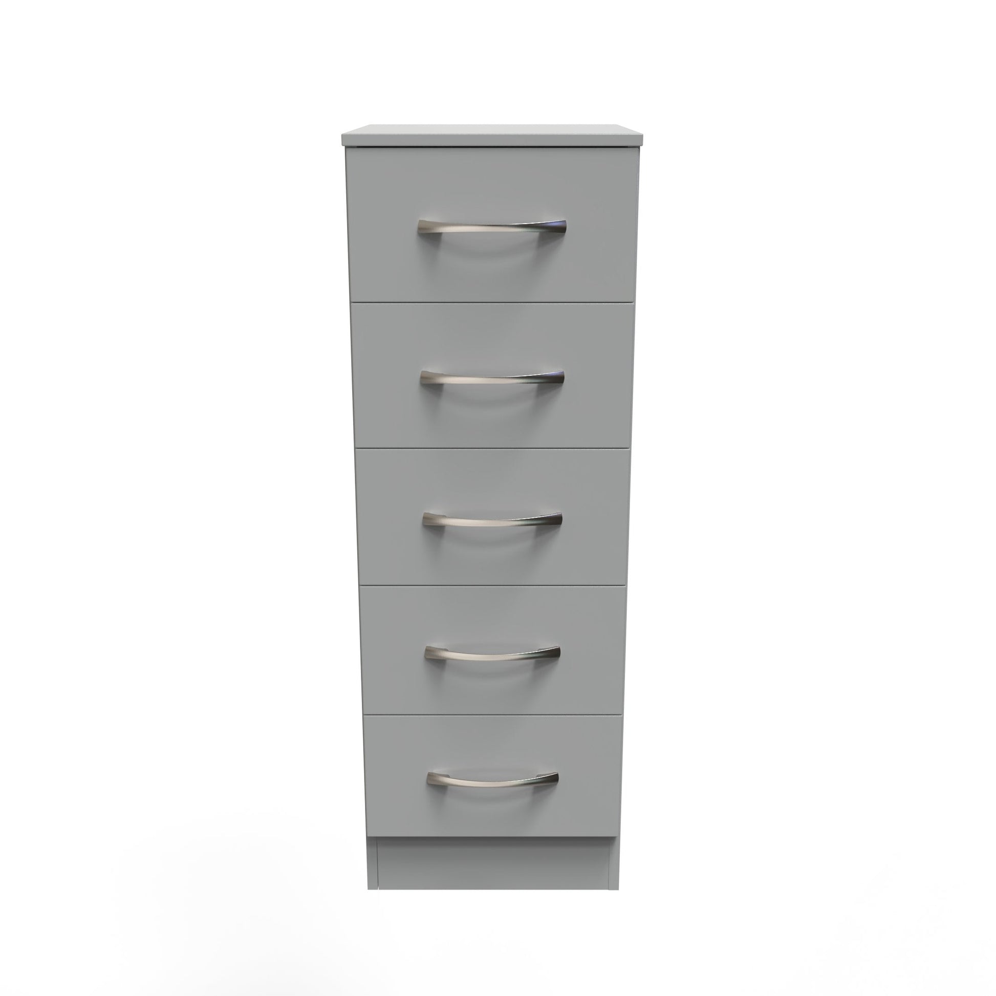 Avon Tall Slim Chest of Drawers Grey 5 Drawers 108cm