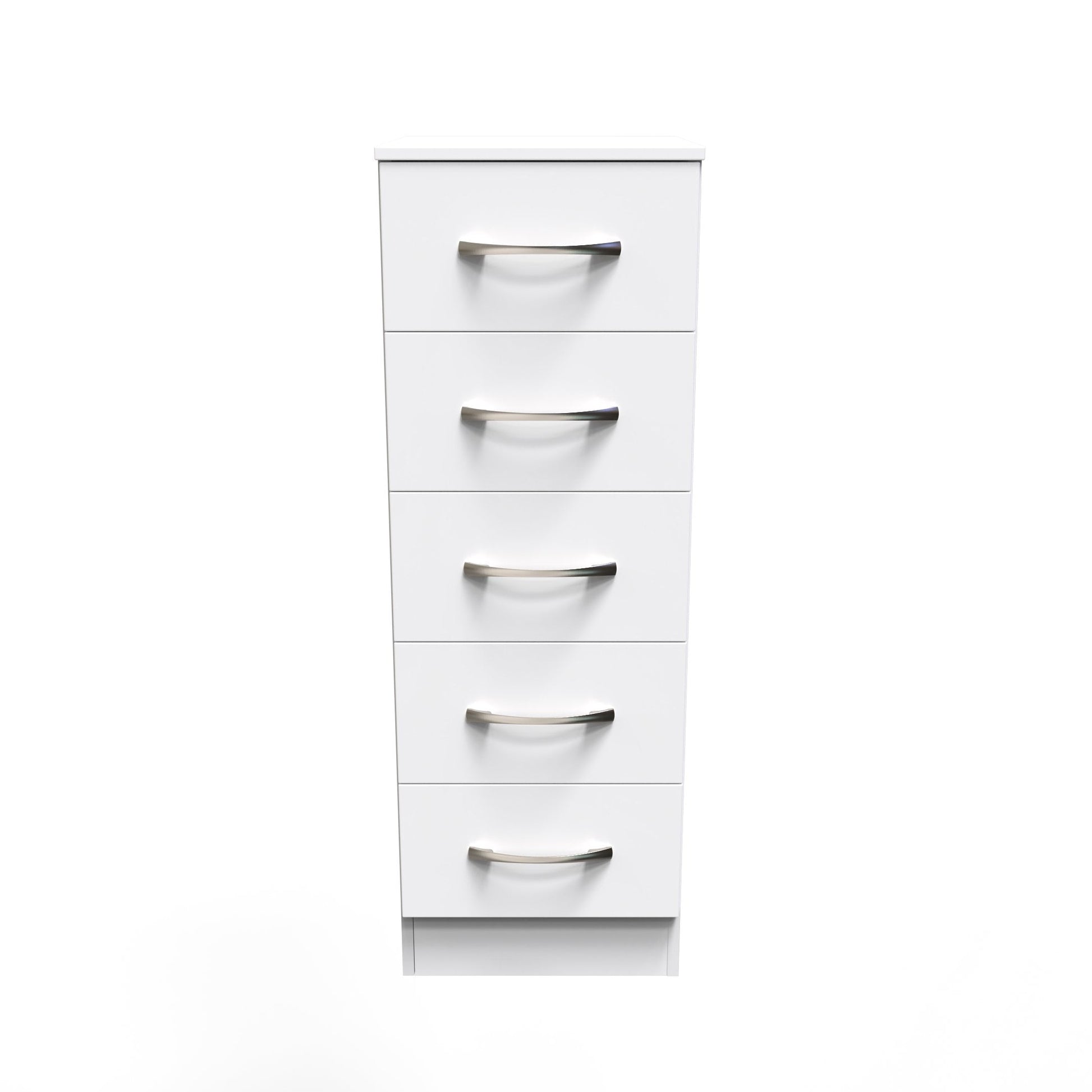 Avon Tall Slim Chest of Drawers White 5 Drawers 108cm