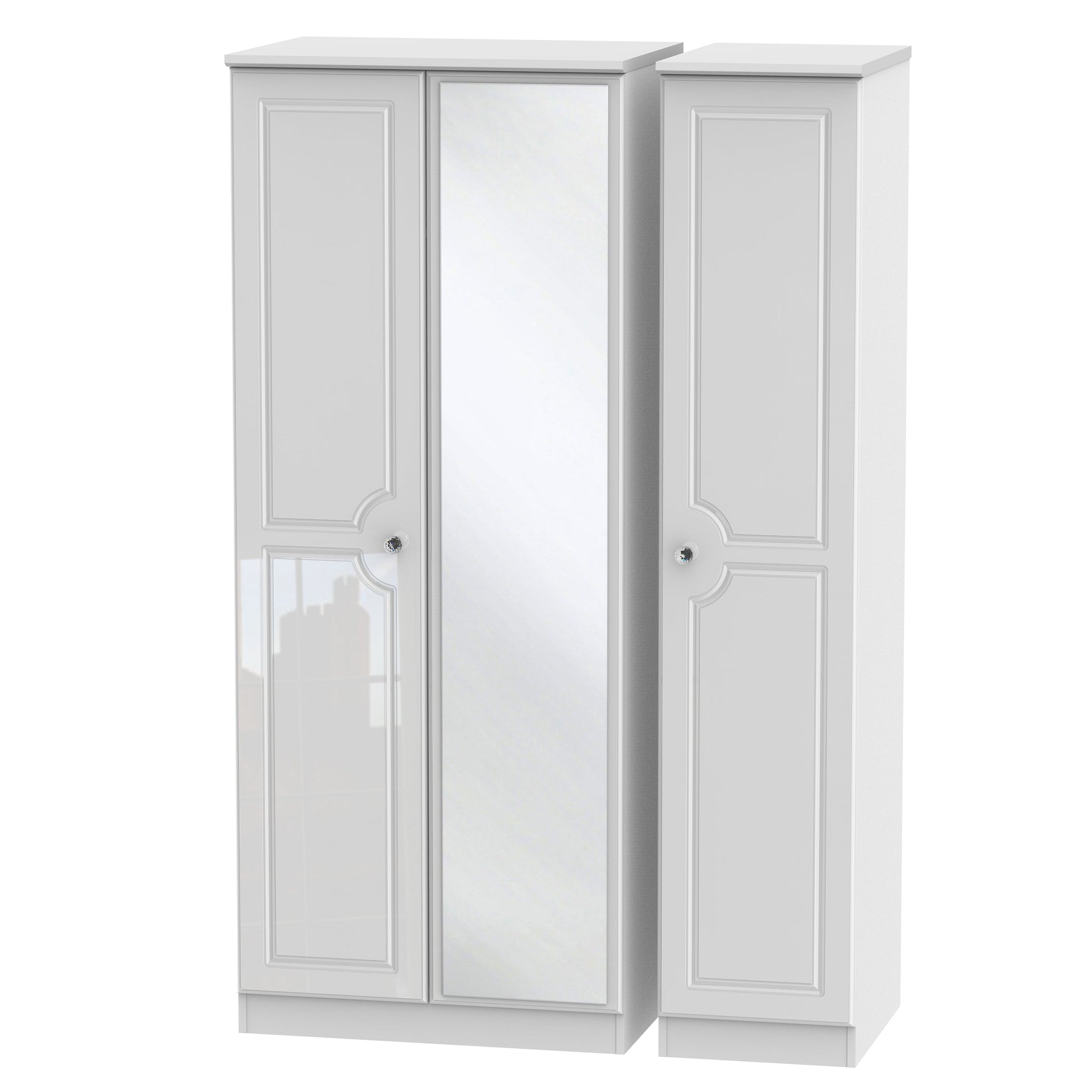 Balmoral Tall Mirror Wardrobe White 3 Doors 2 Shelves 182cm