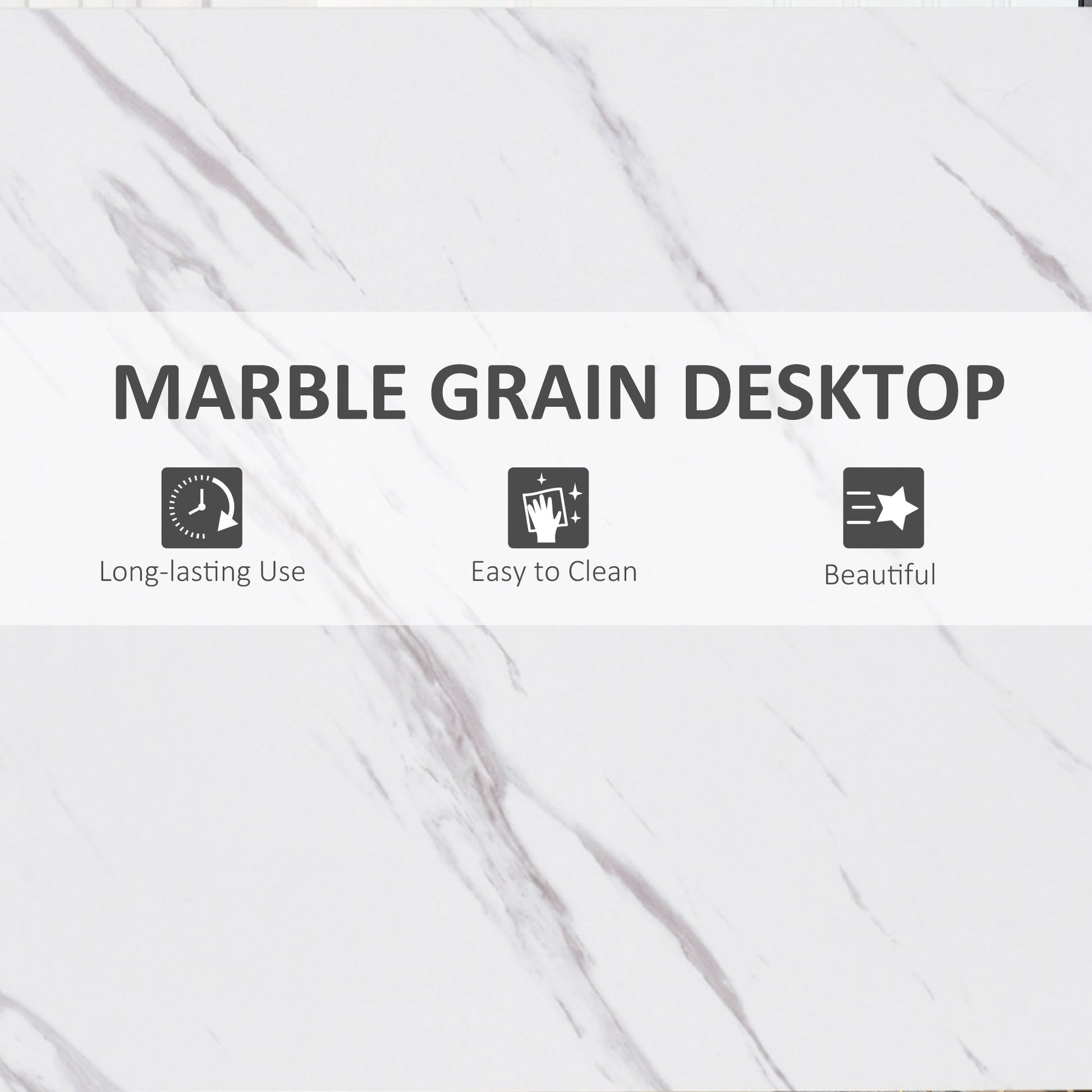 - Clean-lined steel frame with marble grain desktop makes it a great fit in a modern setting