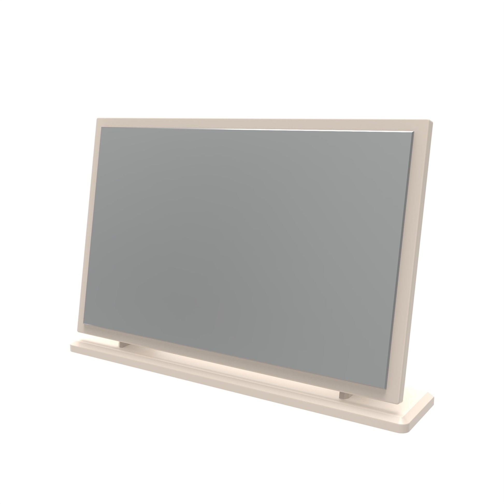 A large angled freestanding mirror with a framed edge. Ideal for any vanity unit or free standing atop a chest of drawers. This range is modern and elegant with a smooth clean design. Features sleek black T-Bar handles and comes ina range of scratch resistant colours. All our furniture is made to order in the United Kingdom, to the highest quality. It is delivered within 10 working days direct to your location of choice by one of our two man delivery teams, and comes fully assembled (although legs may be removed to prevent damage in transit). Part of the Beverley Collection.