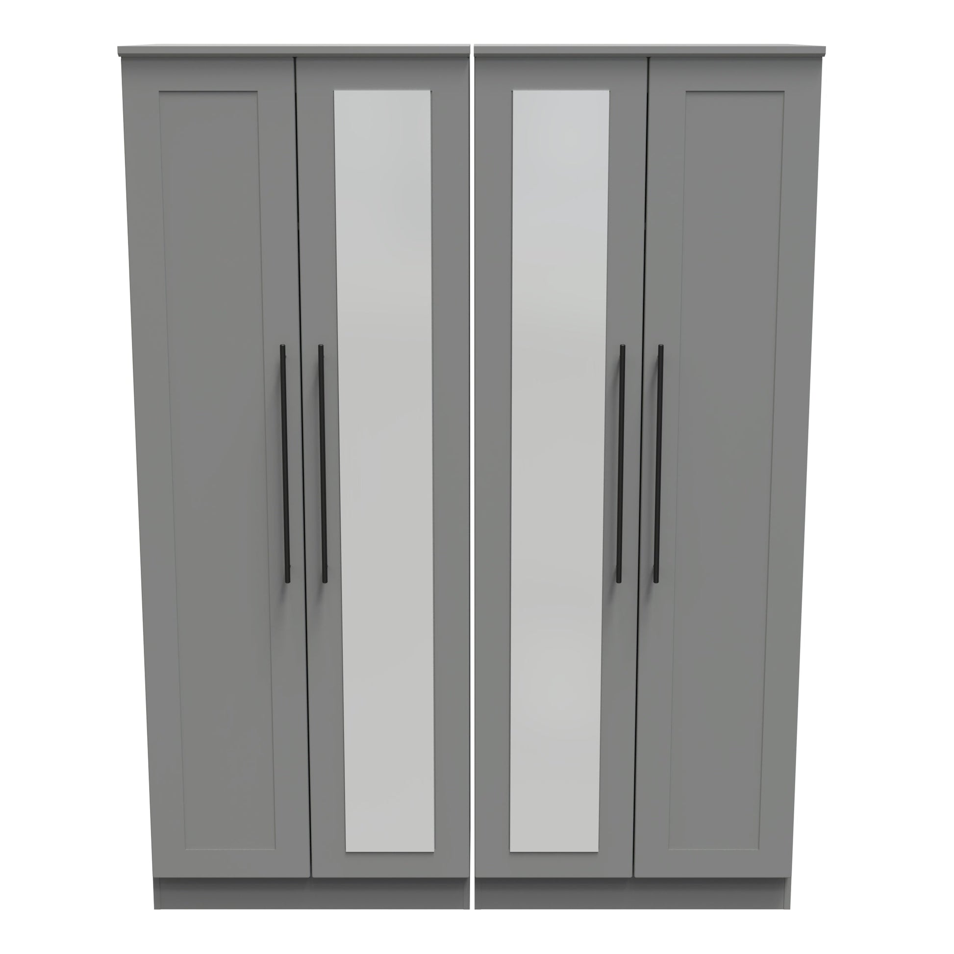 Beverley Tall Mirror Wardrobe Grey 4 Doors 1 Shelf 196cm