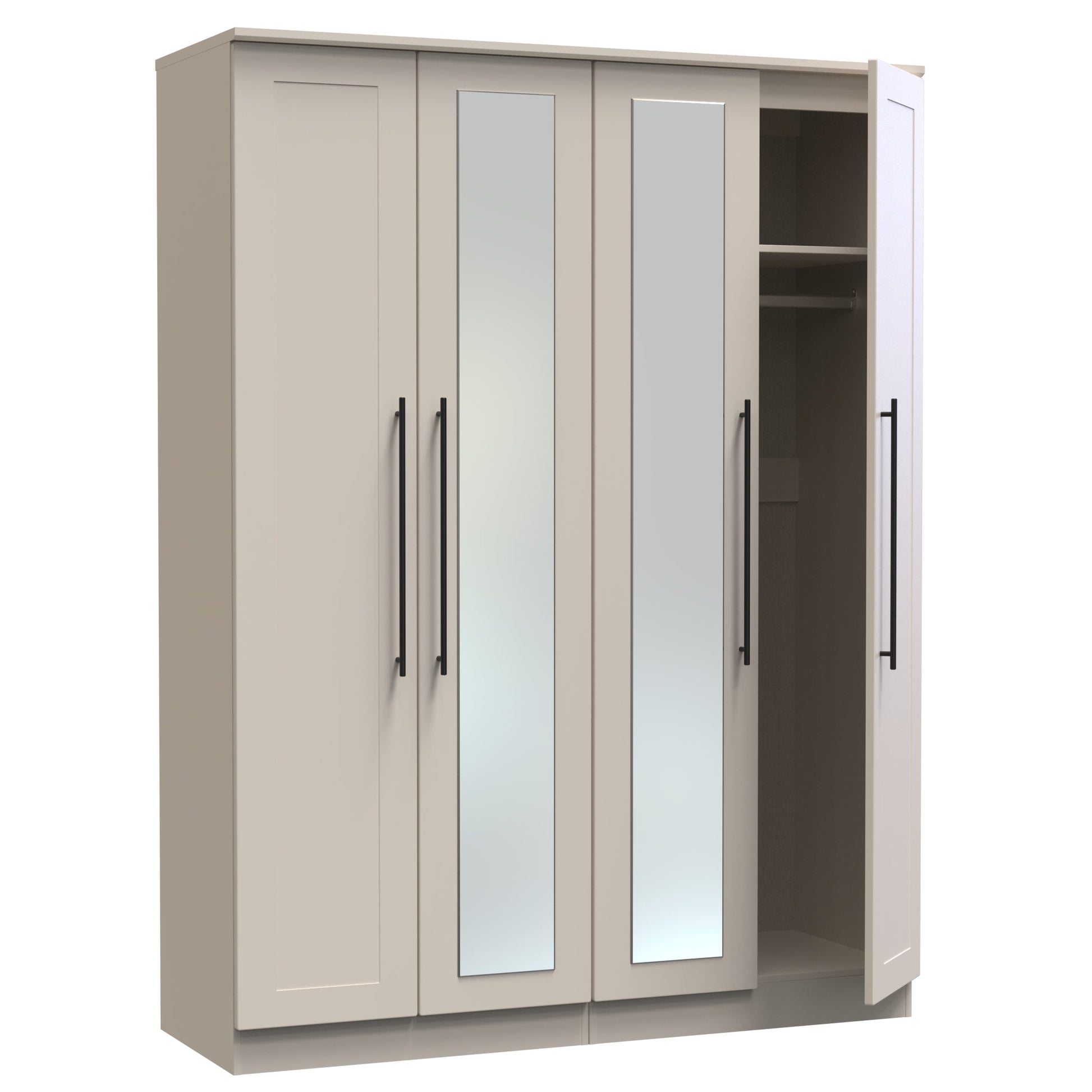 Beverley Tall Mirror Wardrobe Off-White 4 Doors 1 Shelf 196cm