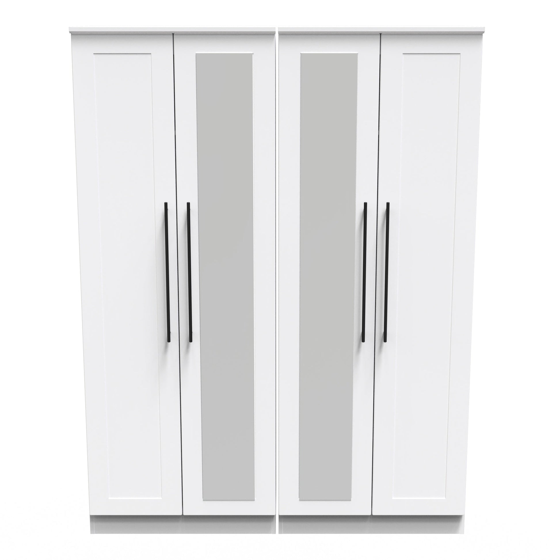 Beverley Tall Mirror Wardrobe White 4 Doors 1 Shelf 196cm