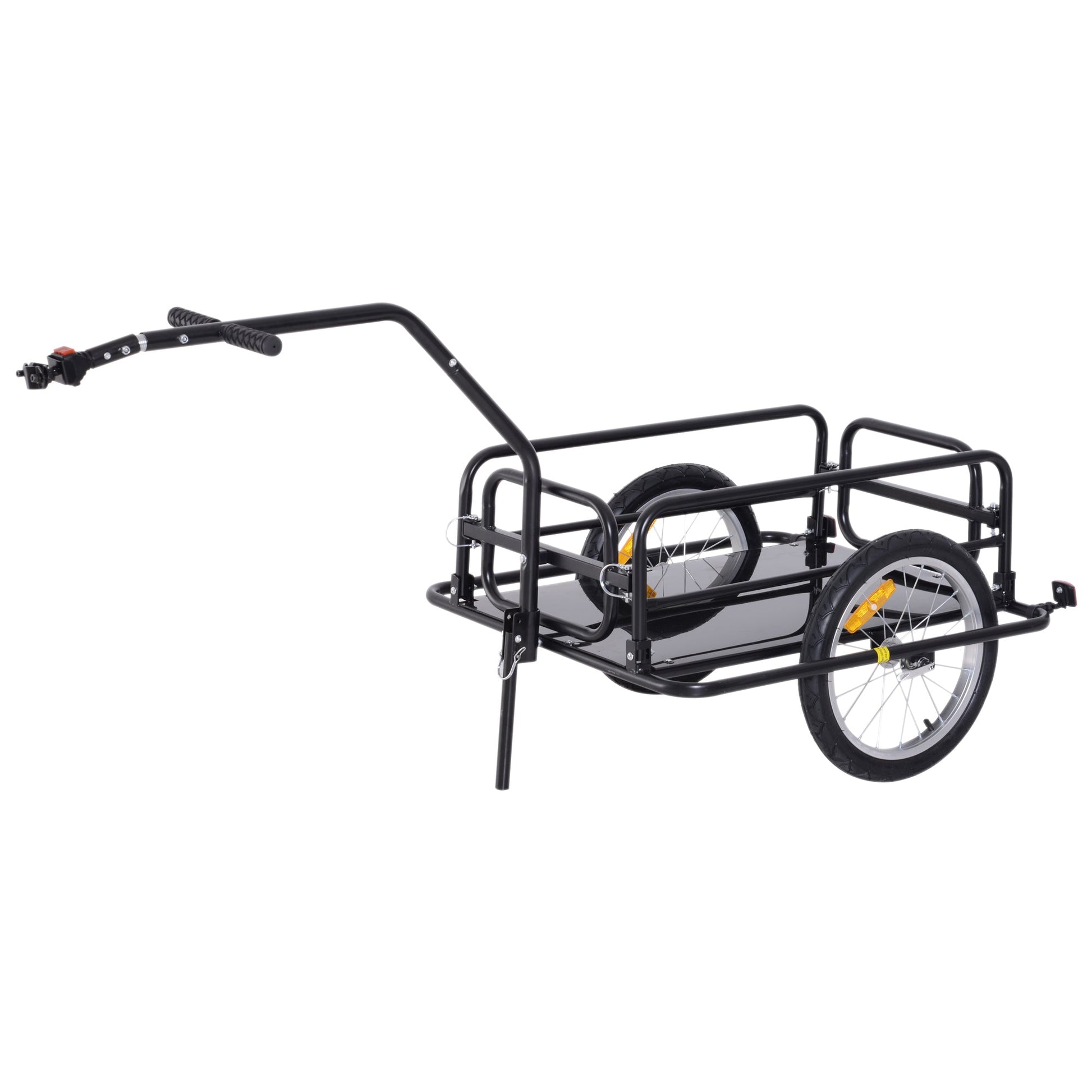 Our newest model of a camping trailer from HOMCOM attaches to most bicycles and has plenty of space for groceries and running routine errands. Steel frame construction allows a weight of up to 88 lbs. to be carried on this bike trolley easily. Two air-filled wheels offer added stability and a smoother ride with your cargo load. Best of all, it's super easy to attach with the included seat post bicycle hitch.