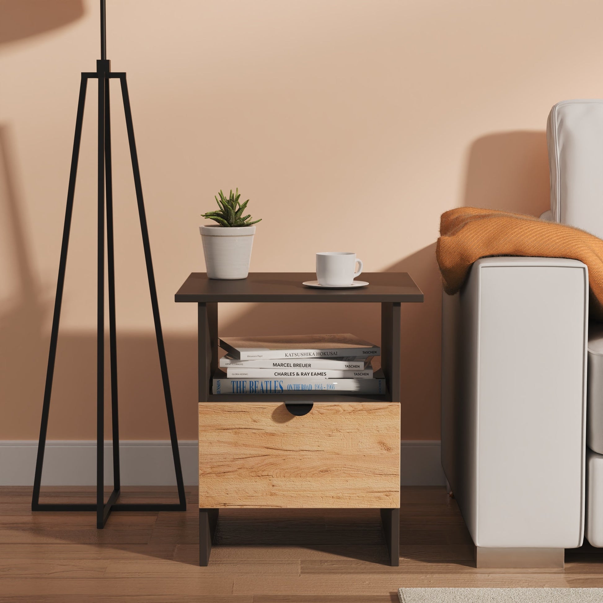 The stylish table comes in a practical square shape. A perfect storage solution, this product comes with one handy shelf and one convenient drawer gives you practical storage space.