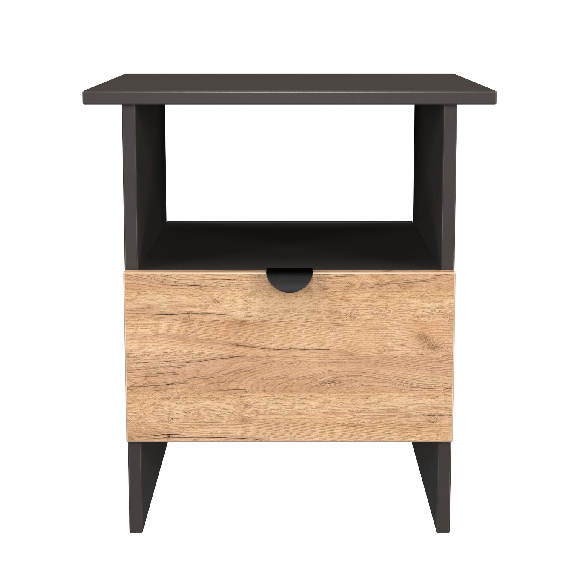 This compact side/lamp table includes a sturdy storage drawer and is perfect for any room.This modern practical range really stands out. With Semi-Circular Black metal Pull handles and many pieces featuring open shelf storage, making this affordable range both stylish and practical.All our furniture is made to order in the United Kingdom, to the highest quality using responsibly sourced materials. It is delivered within 10 working days direct to your location of choice by one of our two man delivery teams, and comes fully assembled (although items with legs will have those legs removed during transit to avoid damage). Part of the Bora Collection.