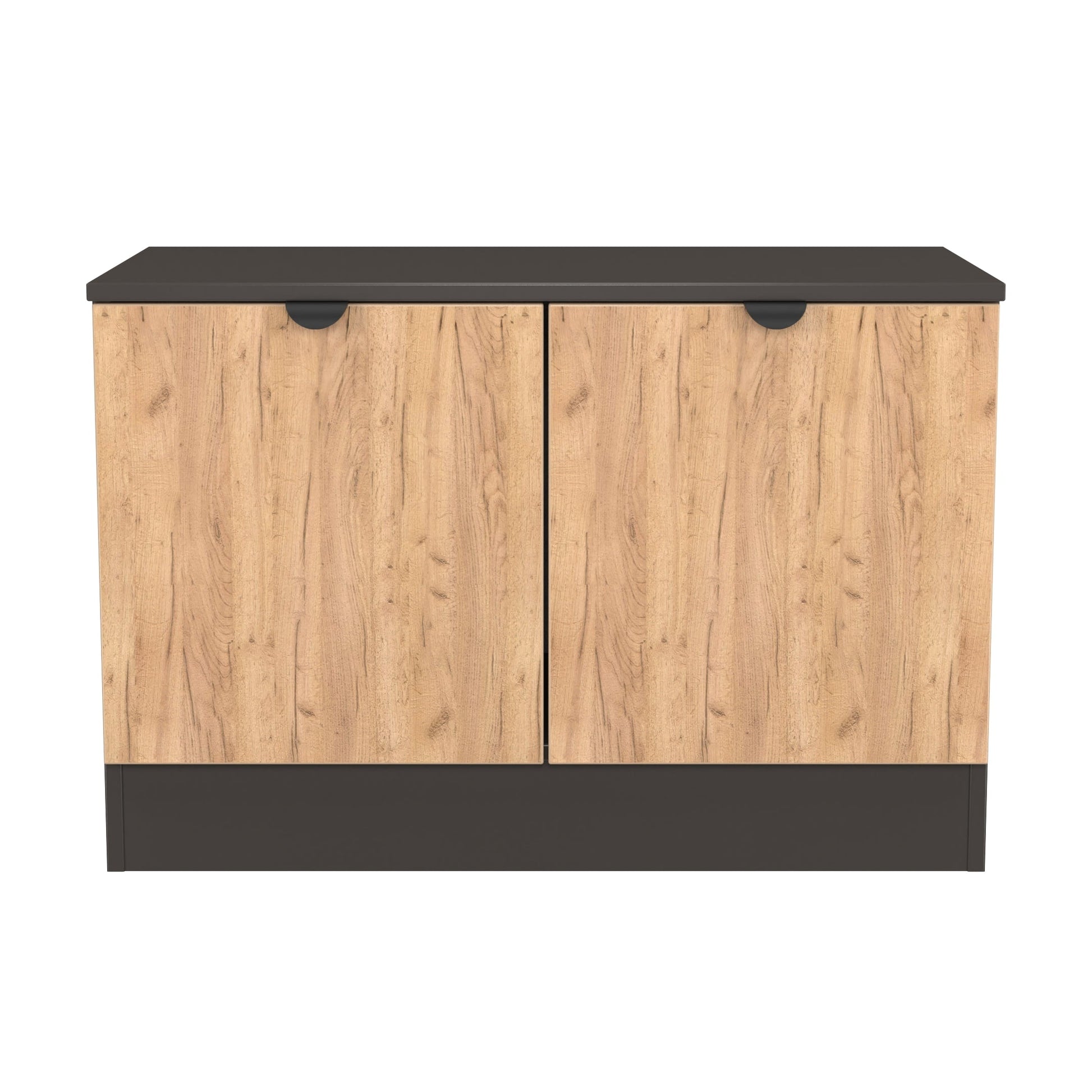This low level storage cupboard is perfect for any living room or louge. Could also be used as a low level TV/Media stand.This modern practical range really stands out. With Semi-Circular Black metal Pull handles and many pieces featuring open shelf storage, making this affordable range both stylish and practical.All our furniture is made to order in the United Kingdom, to the highest quality using responsibly sourced materials. It is delivered within 10 working days direct to your location of choice by one of our two man delivery teams, and comes fully assembled (although items with legs will have those legs removed during transit to avoid damage). Part of the Bora Collection.