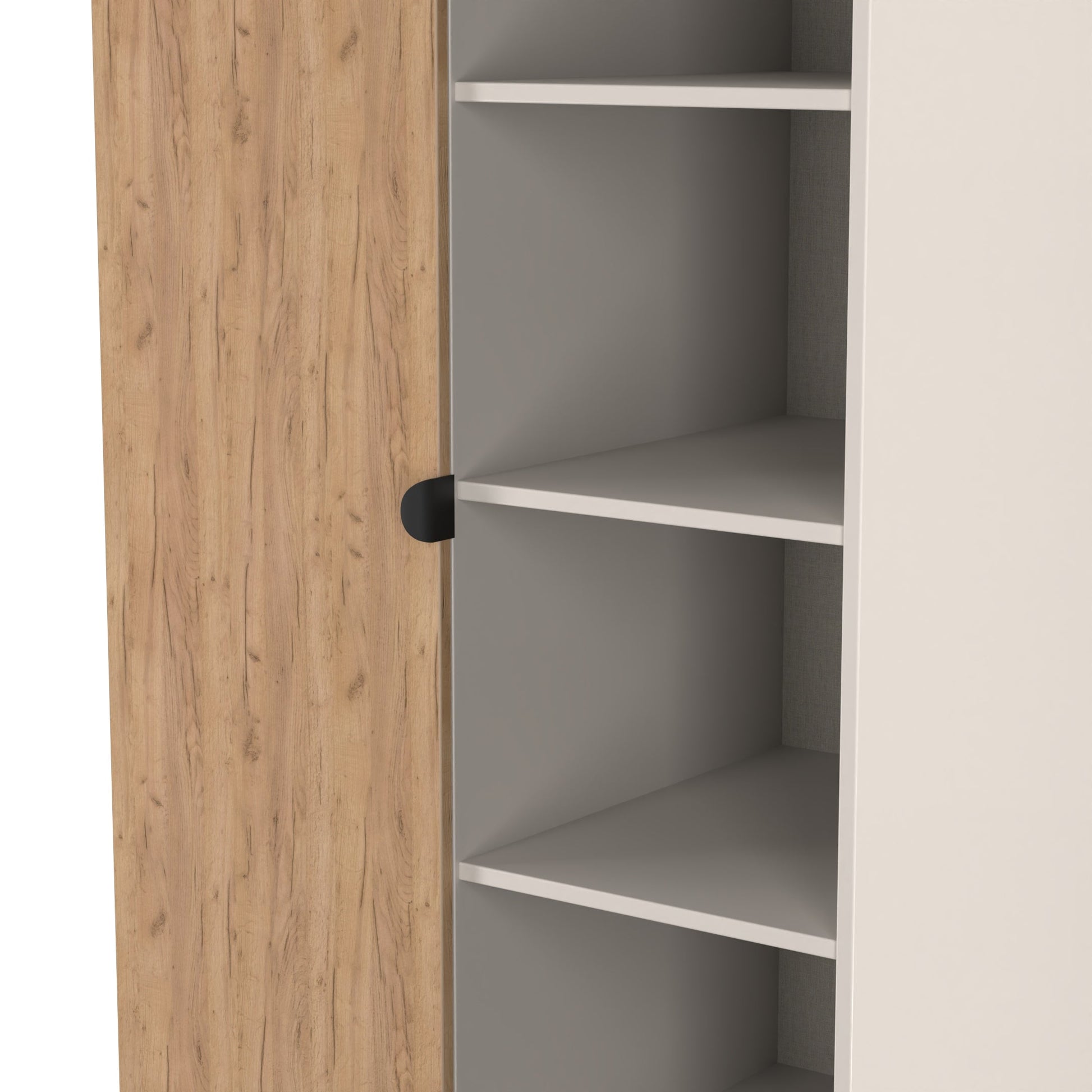 Bora Tall Wardrobe Oak & Off-White 2 Doors 6 Shelves 1 Drawer 196cm