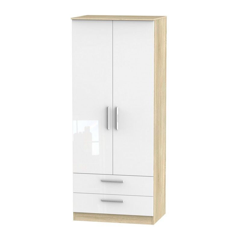 Buxton Tall Wardrobe Natural & White 2 Doors 2 Drawers