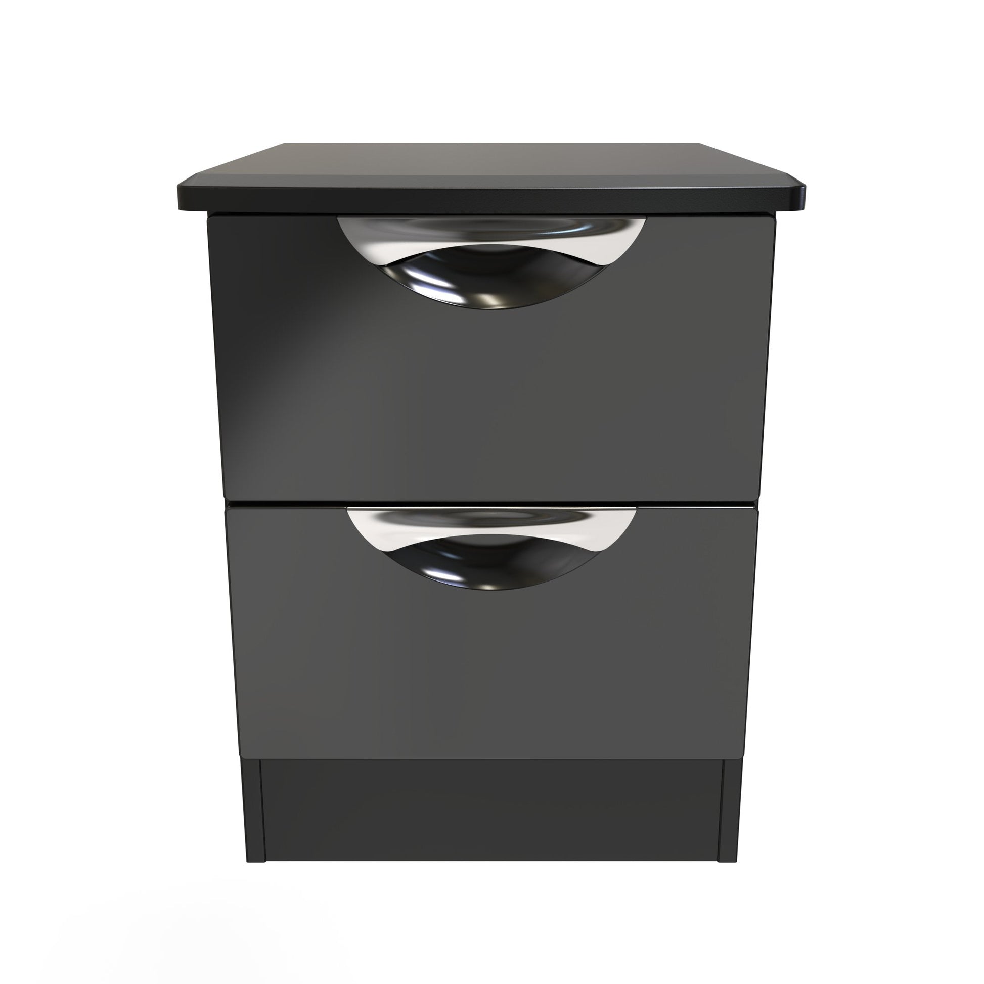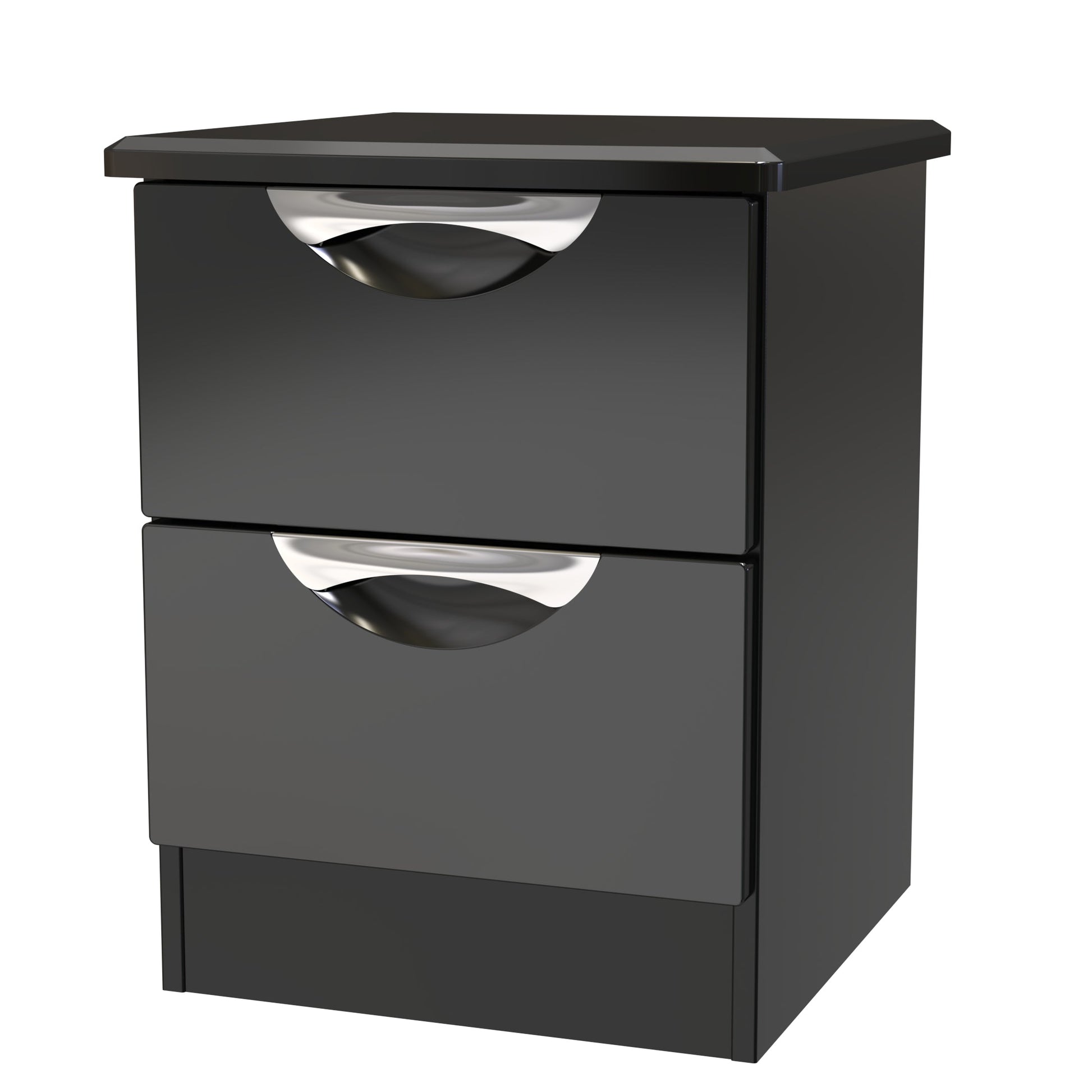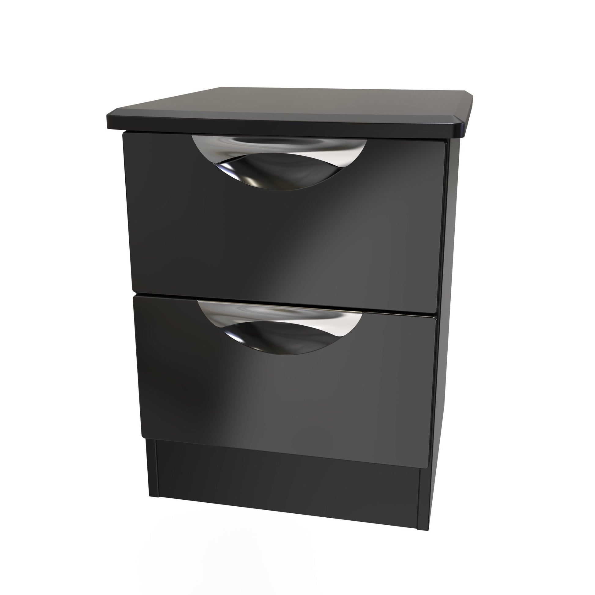 This 2 drawer bedside cabinet is practical and stylish. Perfect for any bedside or as a free standing storage unit. Boasting a clean, contemporary look and pleasing practicality, the furniture range makes a seamless addition to any modern looking home. The range offers an array of practical, organised space for items both large and small that will help keep your room neat and tidy. All pieces have a scratch-resistant veneer to help prevent the wear and tear that can come with everyday usage, while the extensive colour options of the drawers and doors is complemented by distinctive cut-out handles and a smooth finish for a great mix of style and functionality. All our furniture is made to order in the United Kingdom, to the highest quality. It is delivered within 10 working days direct to your location of choice by one of our two man delivery teams, and comes fully assembled (although legs may be removed to prevent damage in transit). Part of the Camden Collection.