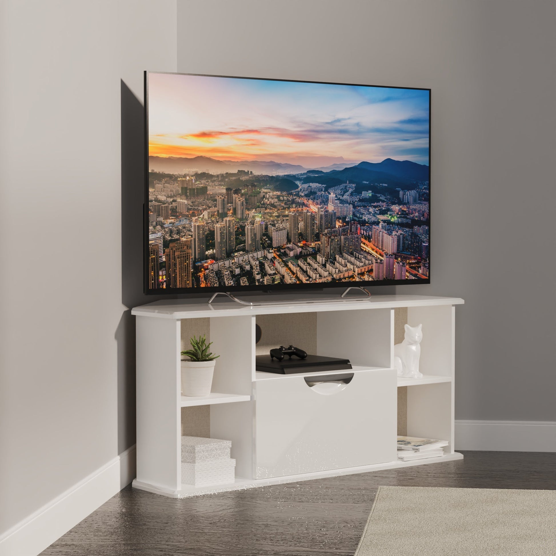 Camden Corner TV Unit White 5 Shelves 1 Drawer 112cm