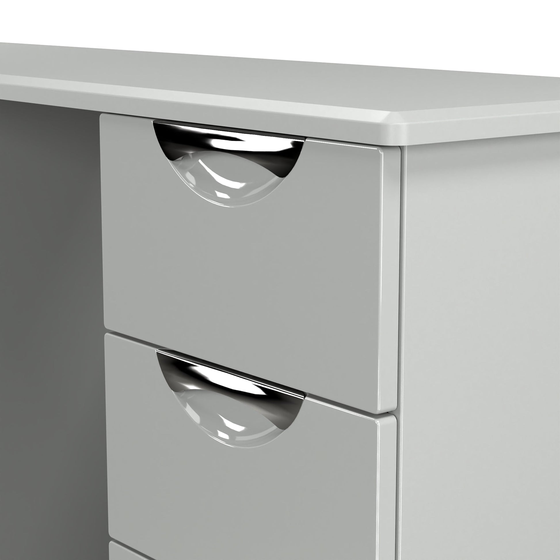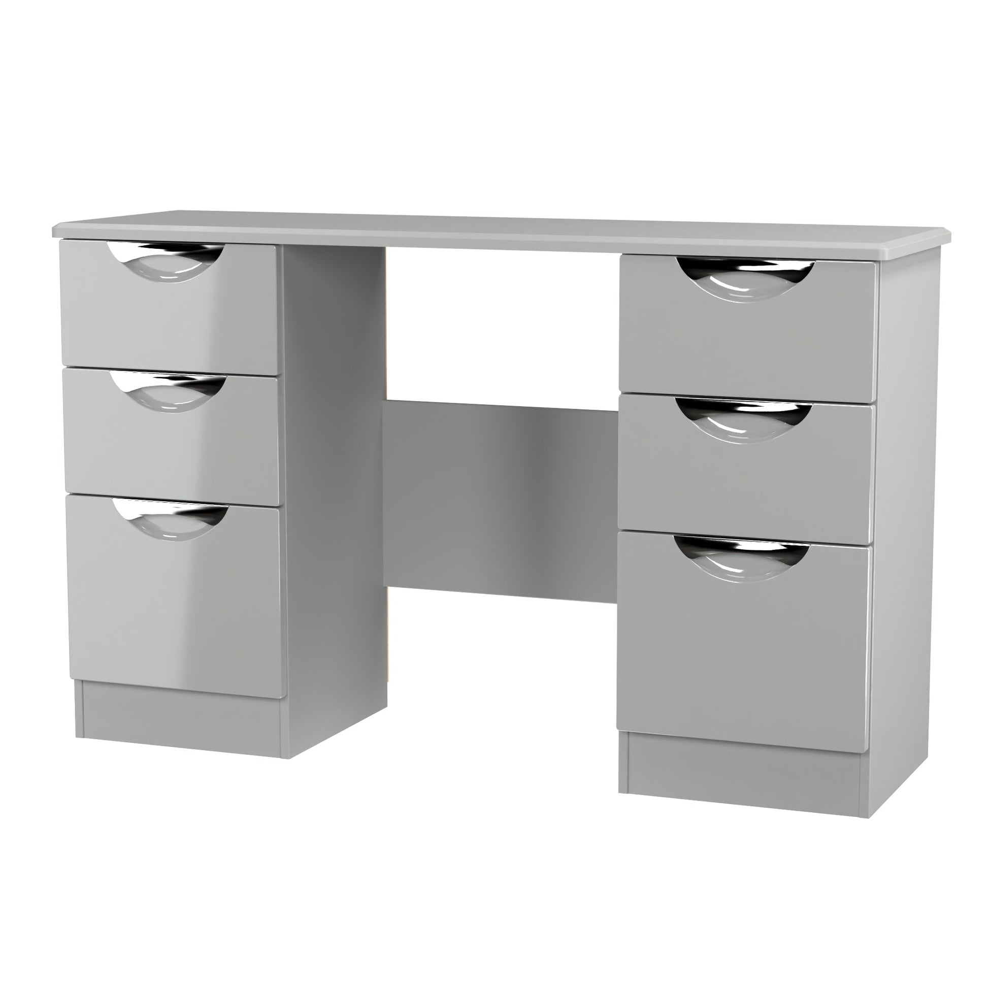 This practical 6 drawer kneehole desk/vanity is perfect for any bedroom or office. A matching stool and mirror (in 2 sizes) are also available. Boasting a clean, contemporary look and pleasing practicality, the furniture range makes a seamless addition to any modern looking home. The range offers an array of practical, organised space for items both large and small that will help keep your room neat and tidy. All pieces have a scratch-resistant veneer to help prevent the wear and tear that can come with everyday usage, while the extensive colour options of the drawers and doors is complemented by distinctive cut-out handles and a smooth finish for a great mix of style and functionality. All our furniture is made to order in the United Kingdom, to the highest quality. It is delivered within 10 working days direct to your location of choice by one of our two man delivery teams, and comes fully assembled (although legs may be removed to prevent damage in transit). Part of the Camden Collection.