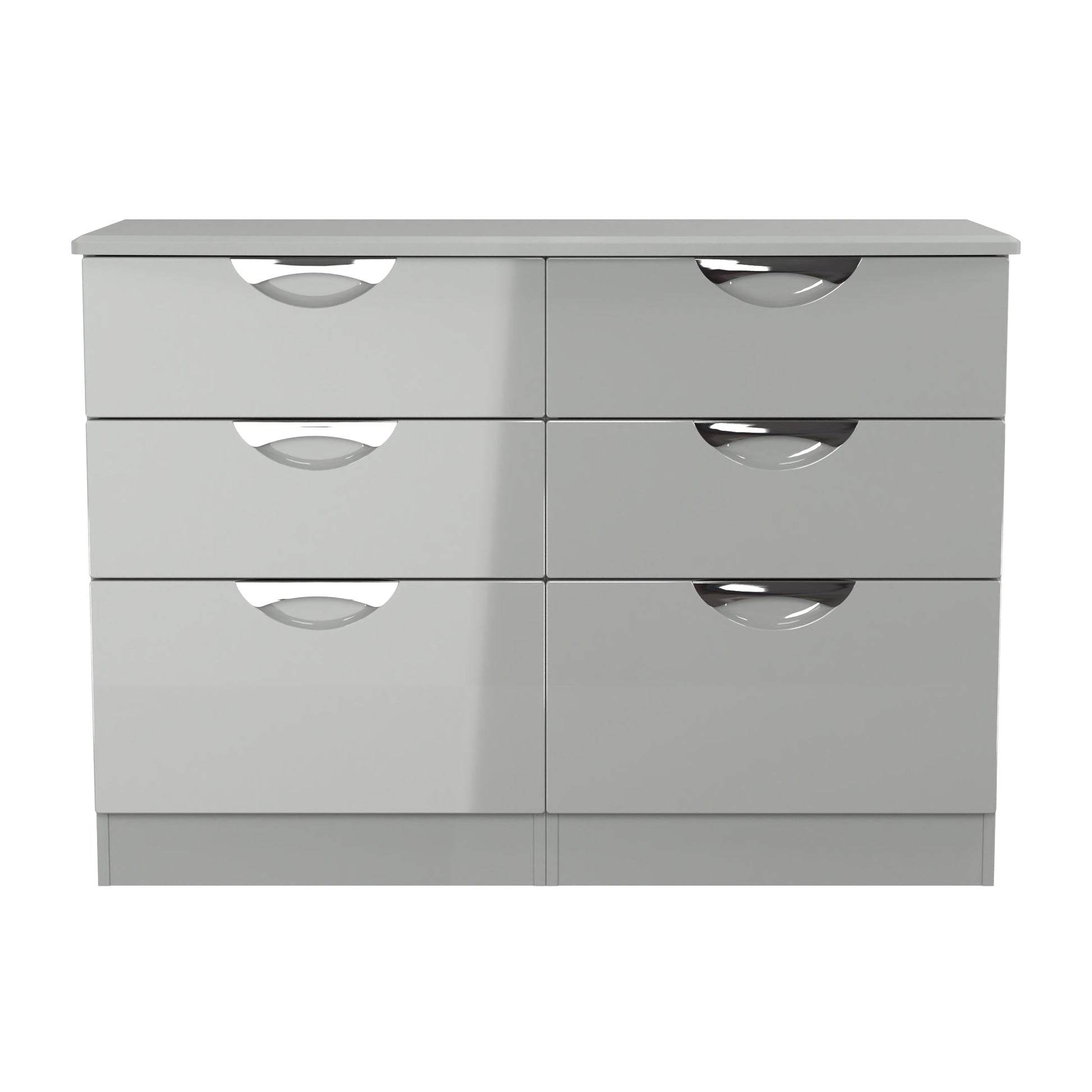 This double width 6 drawer chest of drawers is practical and stylish. Perfect for any home as a free standing storage unit. Boasting a clean, contemporary look and pleasing practicality, the furniture range makes a seamless addition to any modern looking home. The range offers an array of practical, organised space for items both large and small that will help keep your room neat and tidy. All pieces have a scratch-resistant veneer to help prevent the wear and tear that can come with everyday usage, while the extensive colour options of the drawers and doors is complemented by distinctive cut-out handles and a smooth finish for a great mix of style and functionality. All our furniture is made to order in the United Kingdom, to the highest quality. It is delivered within 10 working days direct to your location of choice by one of our two man delivery teams, and comes fully assembled (although legs may be removed to prevent damage in transit). Part of the Camden Collection.