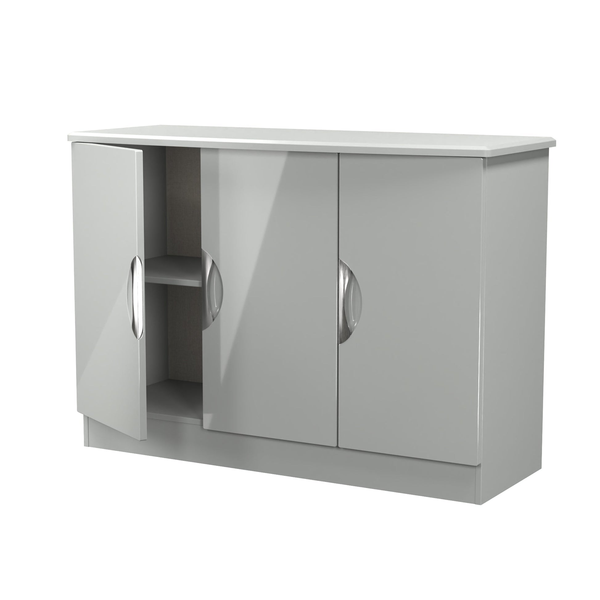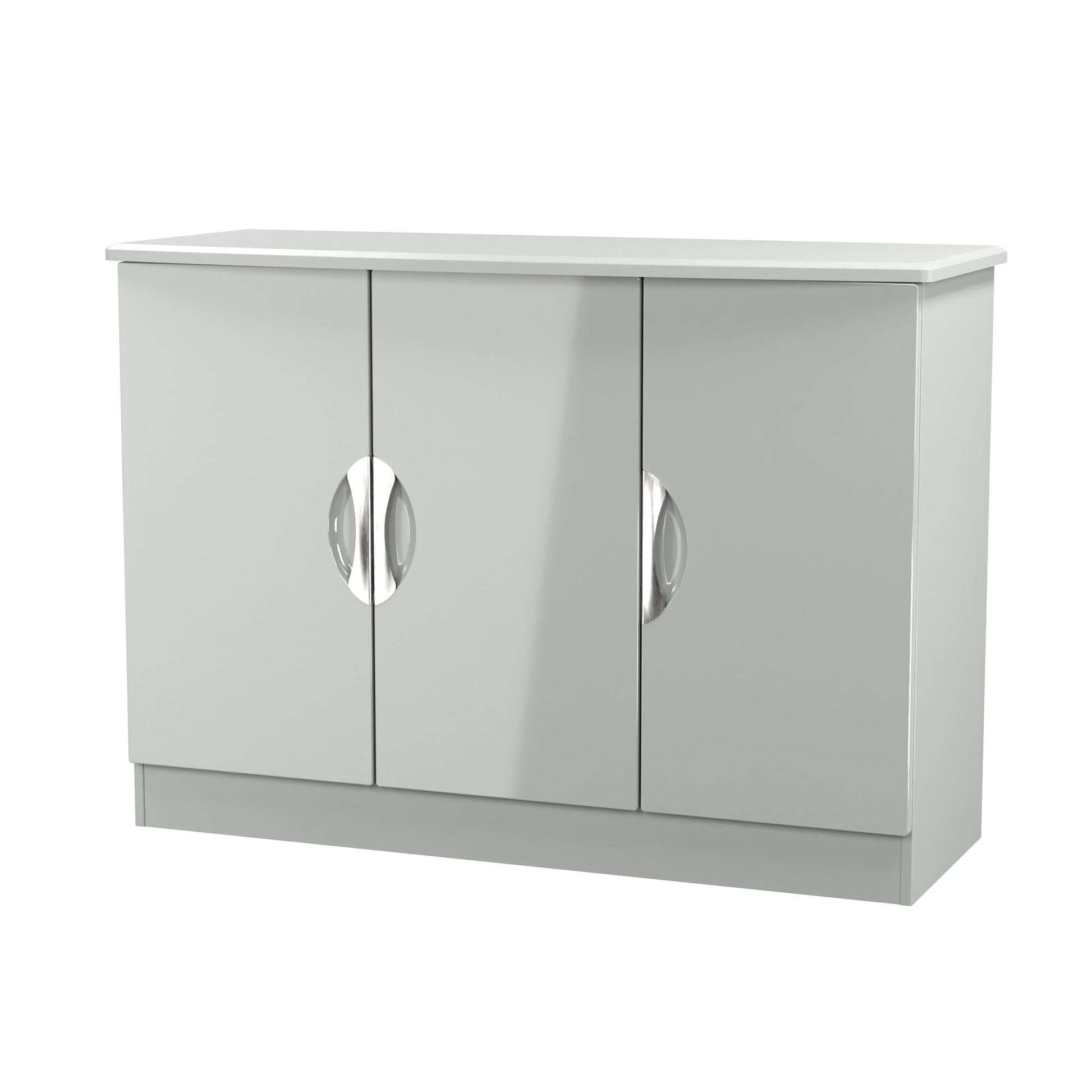 This 3 door wide storage cupboard has internal shelves and is perfect for any living room, dinning room or louge. Could also be used as a TV/Media stand or side board. Boasting a clean, contemporary look and pleasing practicality, the furniture range makes a seamless addition to any modern looking home. The range offers an array of practical, organised space for items both large and small that will help keep your room neat and tidy. All pieces have a scratch-resistant veneer to help prevent the wear and tear that can come with everyday usage, while the extensive colour options of the drawers and doors is complemented by distinctive cut-out handles and a smooth finish for a great mix of style and functionality. All our furniture is made to order in the United Kingdom, to the highest quality. It is delivered within 10 working days direct to your location of choice by one of our two man delivery teams, and comes fully assembled (although legs may be removed to prevent damage in transit). Part of the Camden Collection.