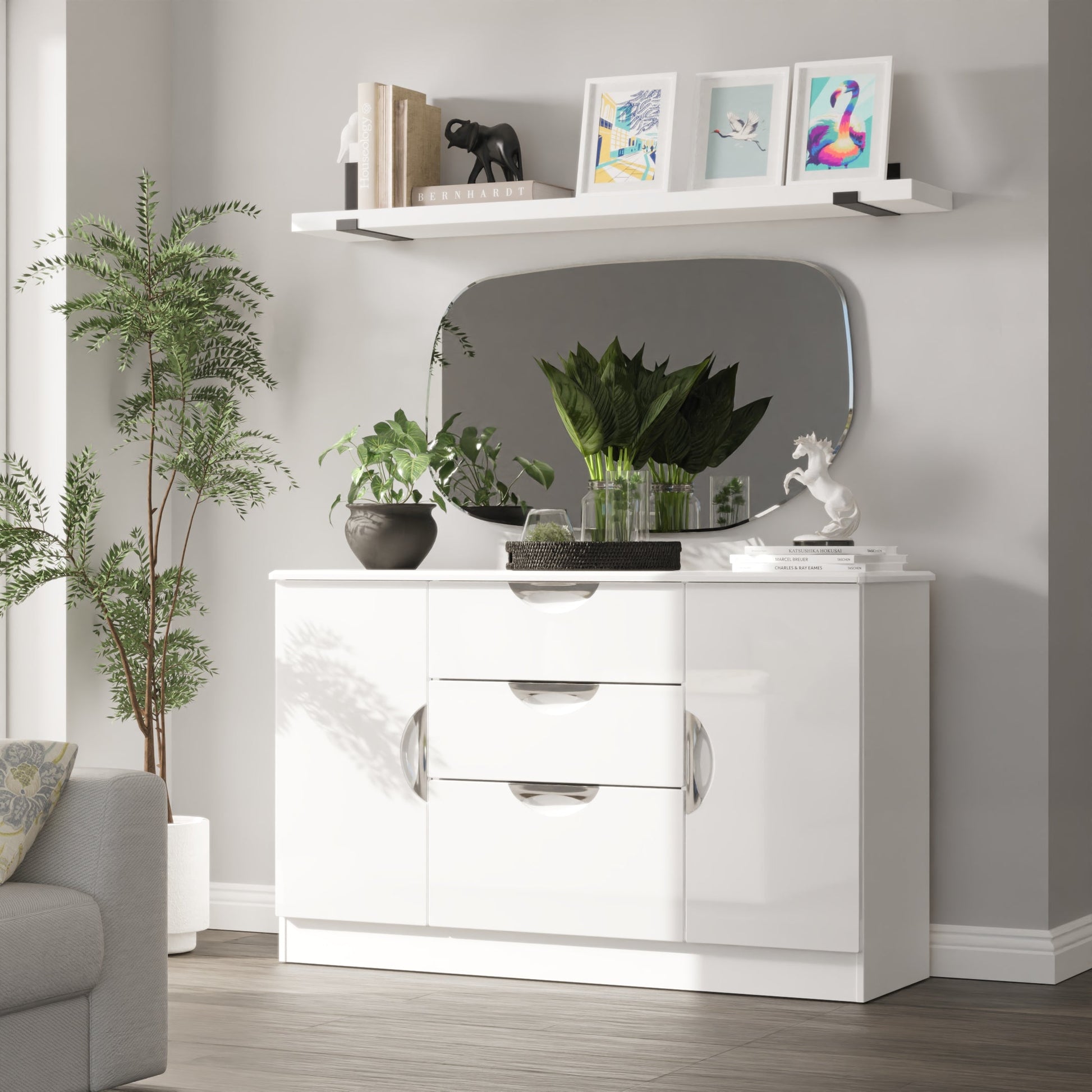 Camden Large Sideboard White 2 Doors 3 Drawers 128cm