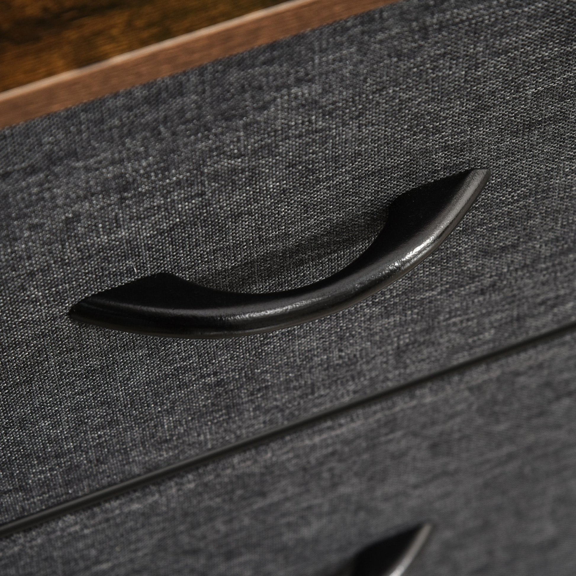 - Linen-feel drawers can be removed and folded. Comes with handle to open and close
