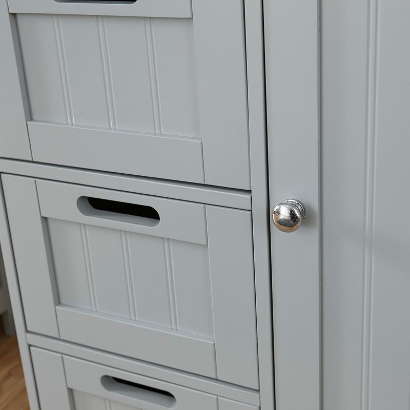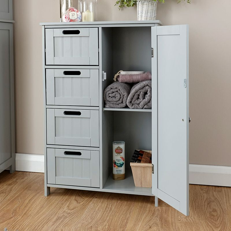 This cabinet from GFW offers fine quality at an outstanding price and is perfect for anyone looking to enhance the surroundings for themselves, their families and their guests. An ideal option for storage of all manner of household items, this piece will give your bathroom an instant refresh. In an elegant grey colour that will complement your decor beautifully.