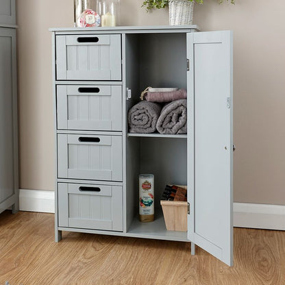 A useful door offers easy access and four convenient drawers give you practical storage space.