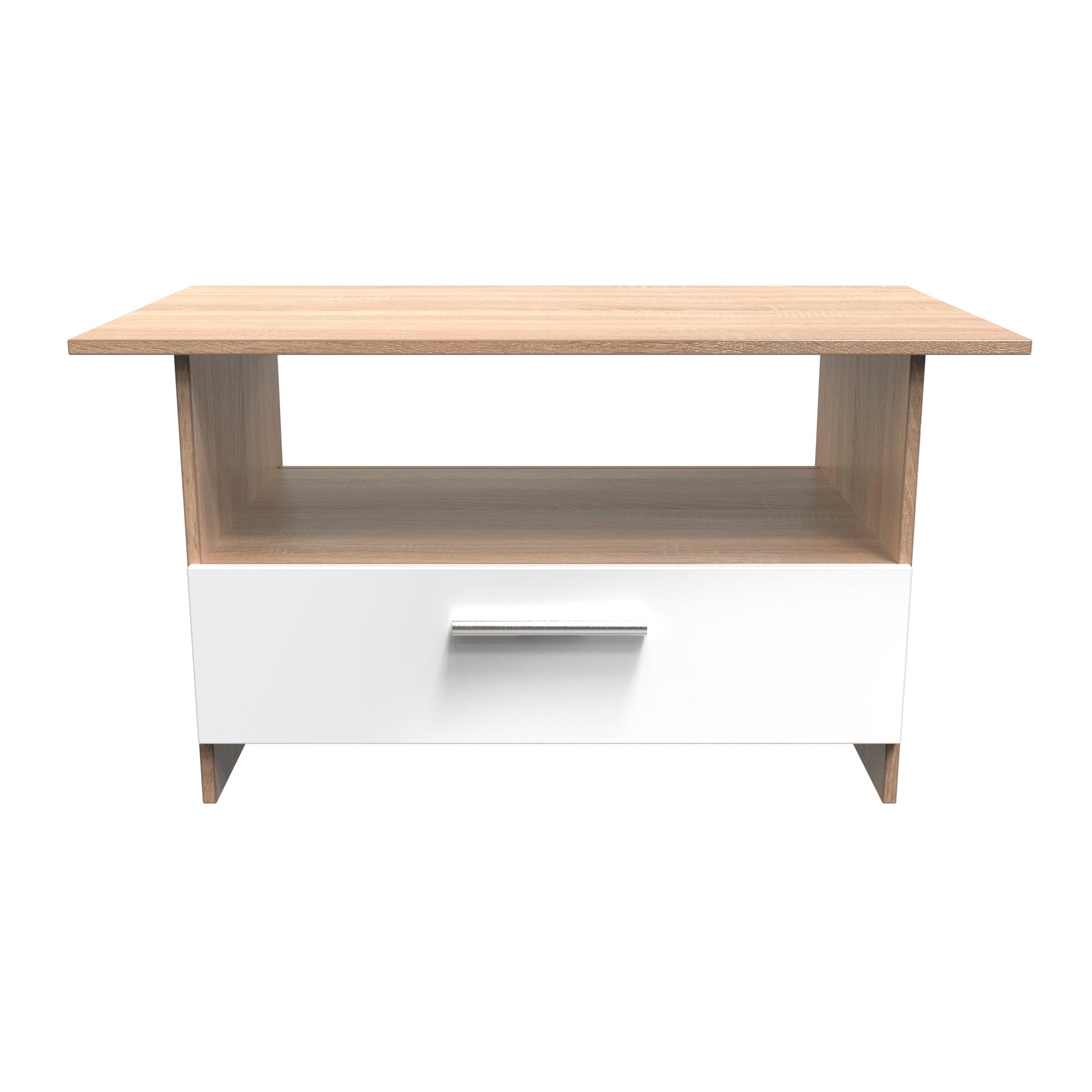 Contrast Coffee Table White & Oak 1 Shelf 1 Drawer 93cm