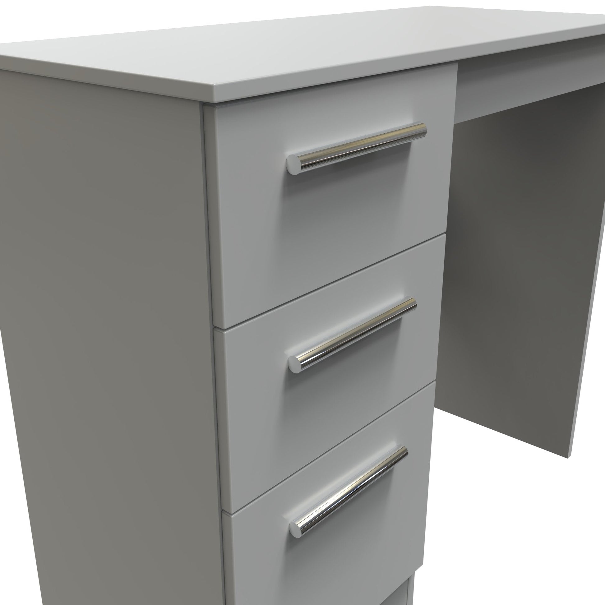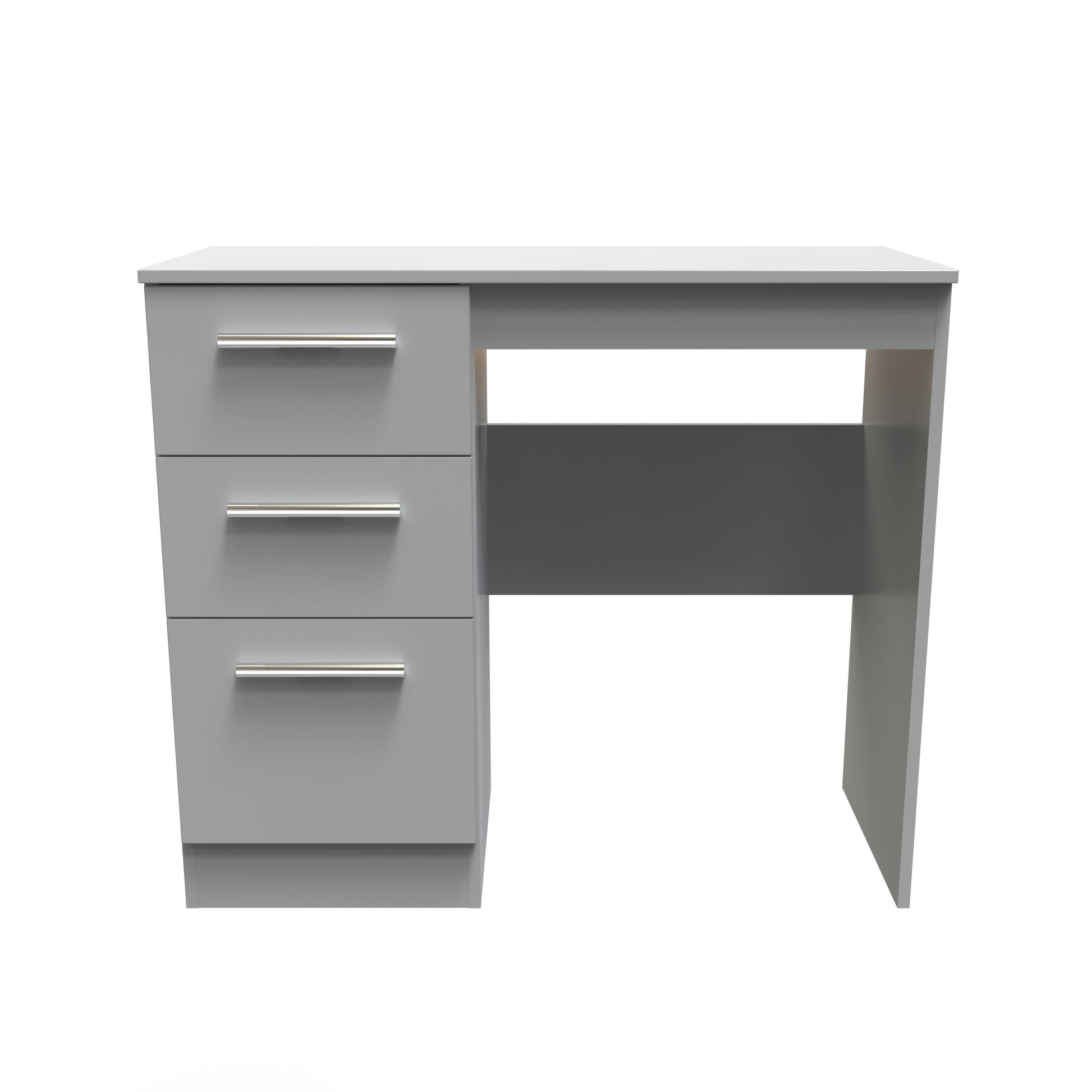 This practical 3 drawer narrow desk/vanity is perfect for any bedroom or office. A matching stool and mirror (in 2 sizes) are also available. Create your dream bedroom with this exclusive range. This range enhances the beauty of any bedroom style. This range is made up of high-quality materials & long-lasting finishes. The fronts are complemented by sleek designer-style metal handles and when you open the drawers, you'll notice the smooth metal runners and linen-look interior. All our furniture is made to order in the United Kingdom, to the highest quality. It is delivered within 10 working days direct to your location of choice by one of our two man delivery teams, and comes fully assembled (although legs may be removed to prevent damage in transit). Part of the Contrast Collection.