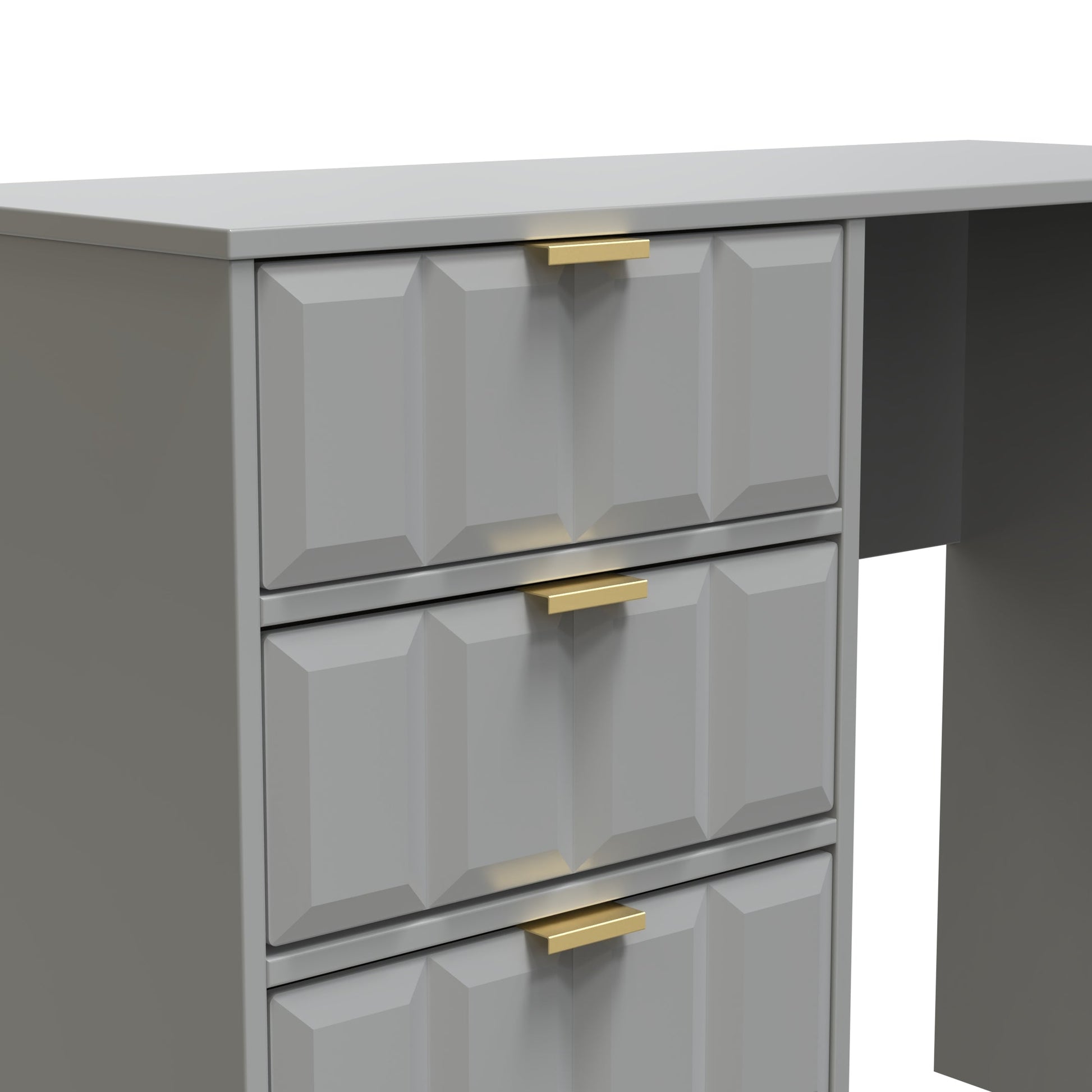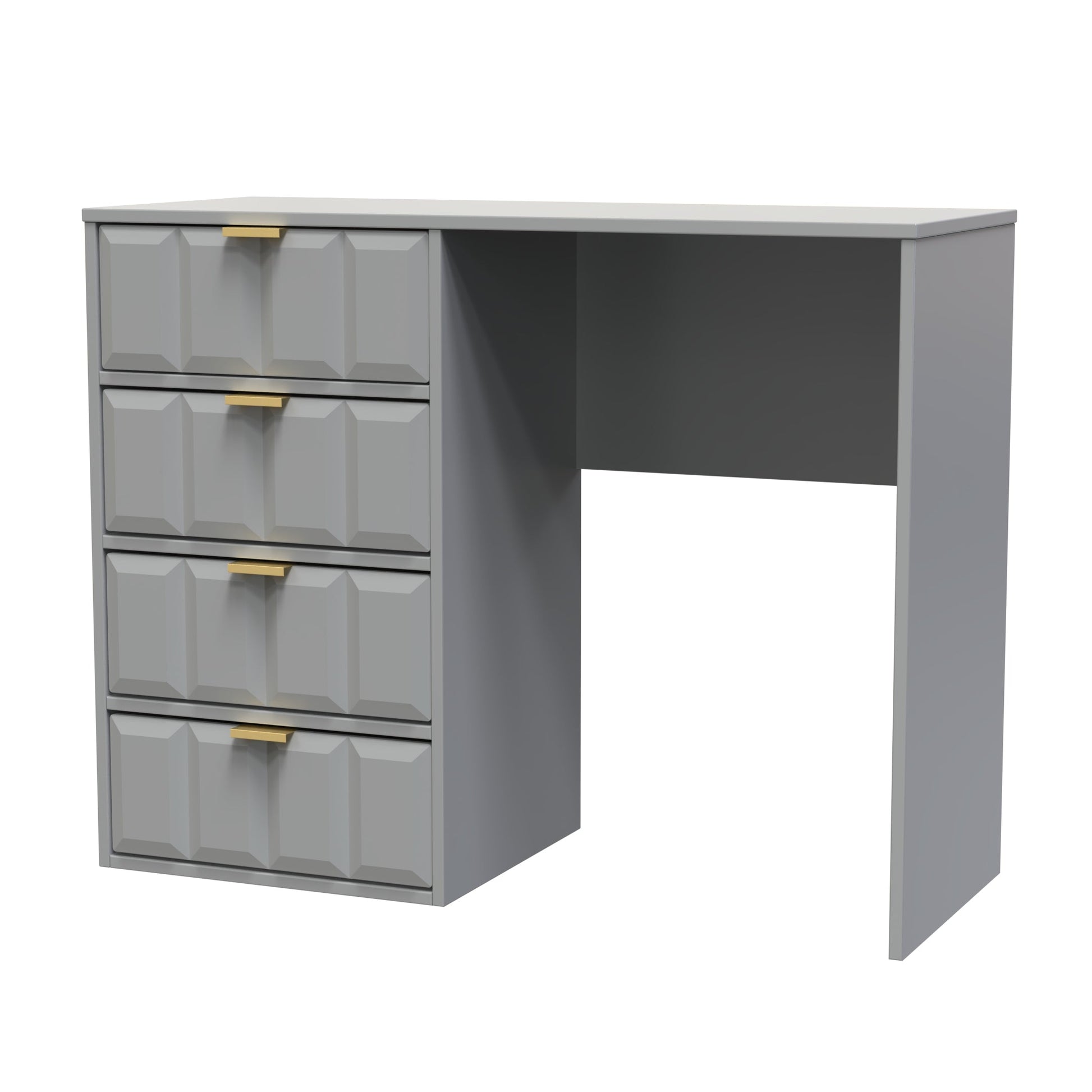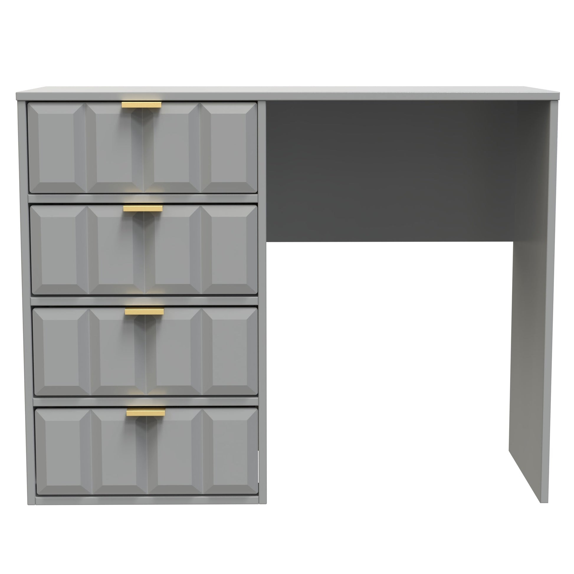 This 4 Drawer Vanity/Desk is equally at home in the bedroom or the office. A modern and distinctive range. This ranges unique aesthetic is best represented by the distinctive "Cube" patten of the drawer and door fronts. Also features Gold Metal Handles and Gold Hairpin Legs. Comes in a wide range of colours including eye cathching two tone colour combinations. All our furniture is made to order in the United Kingdom, to the highest quality. It is delivered within 10 working days direct to your location of choice by one of our two man delivery teams, and comes fully assembled (although legs may be removed to prevent damage in transit). Part of the Cube Collection.