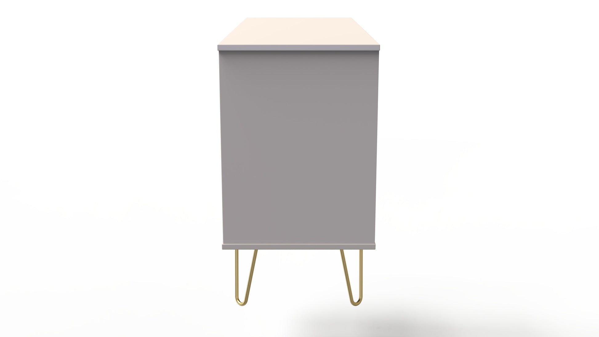 This double width 6 drawer chest of drawers is practical and stylish. Perfect for any home as a free standing storage unit. A modern and distinctive range. This ranges unique aesthetic is best represented by the distinctive "Cube" patten of the drawer and door fronts. Also features Gold Metal Handles and Gold Hairpin Legs. Comes in a wide range of colours including eye cathching two tone colour combinations. All our furniture is made to order in the United Kingdom, to the highest quality. It is delivered within 10 working days direct to your location of choice by one of our two man delivery teams, and comes fully assembled (although legs may be removed to prevent damage in transit). Part of the Cube Collection.