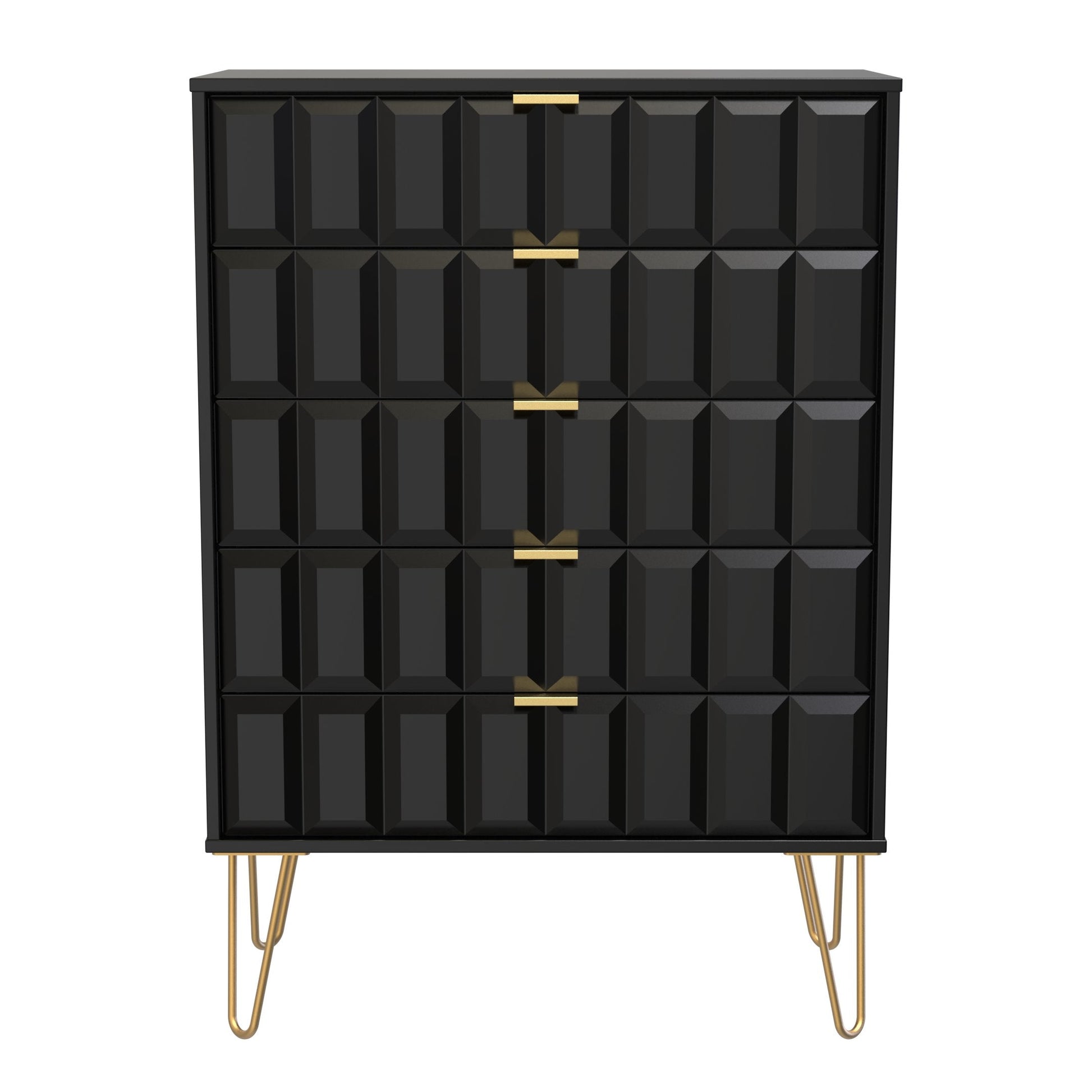 Cube Tall Chest of Drawers Black 5 Drawers 109cm
