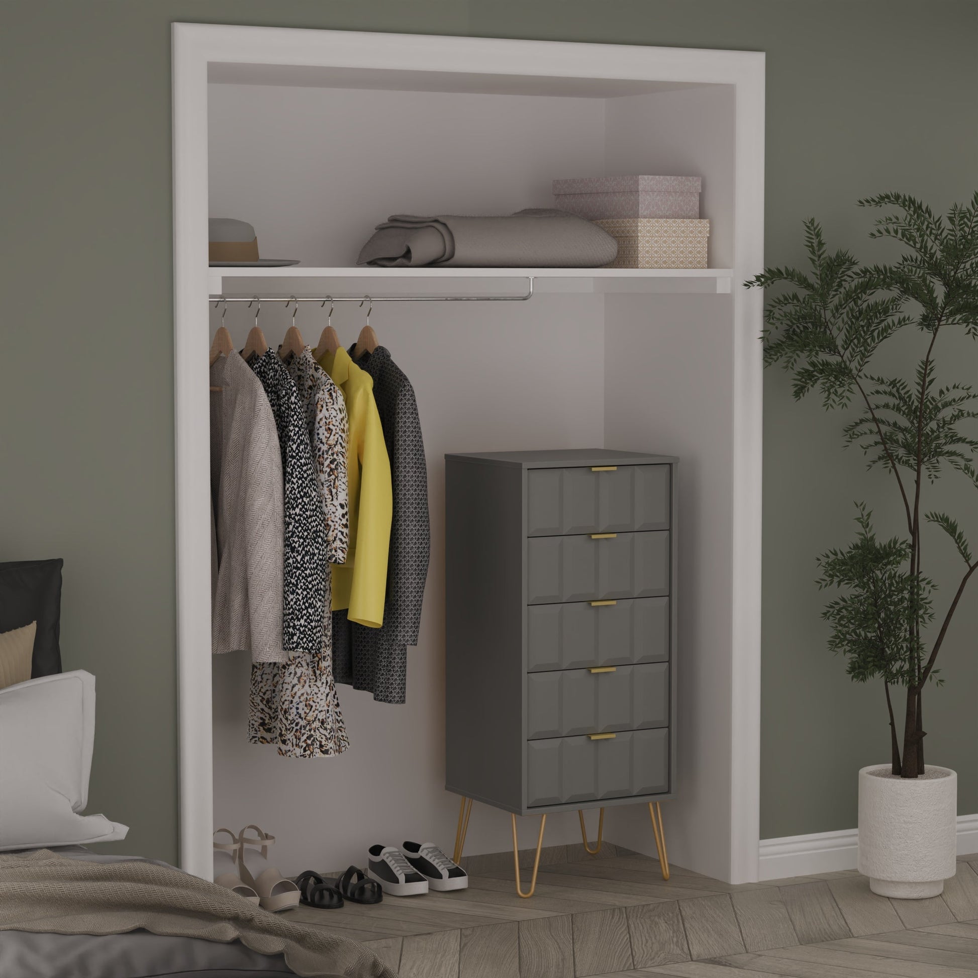 This tallboy from Swift offers great value along with first-rate quality and is ideal for those who appreciate a well-thought-out living space. The vertical design means you'll have plenty of storage space., this piece will provide an outstanding enhancement to your sleeping area. In an elegant grey colour that will complement your decor beautifully.
