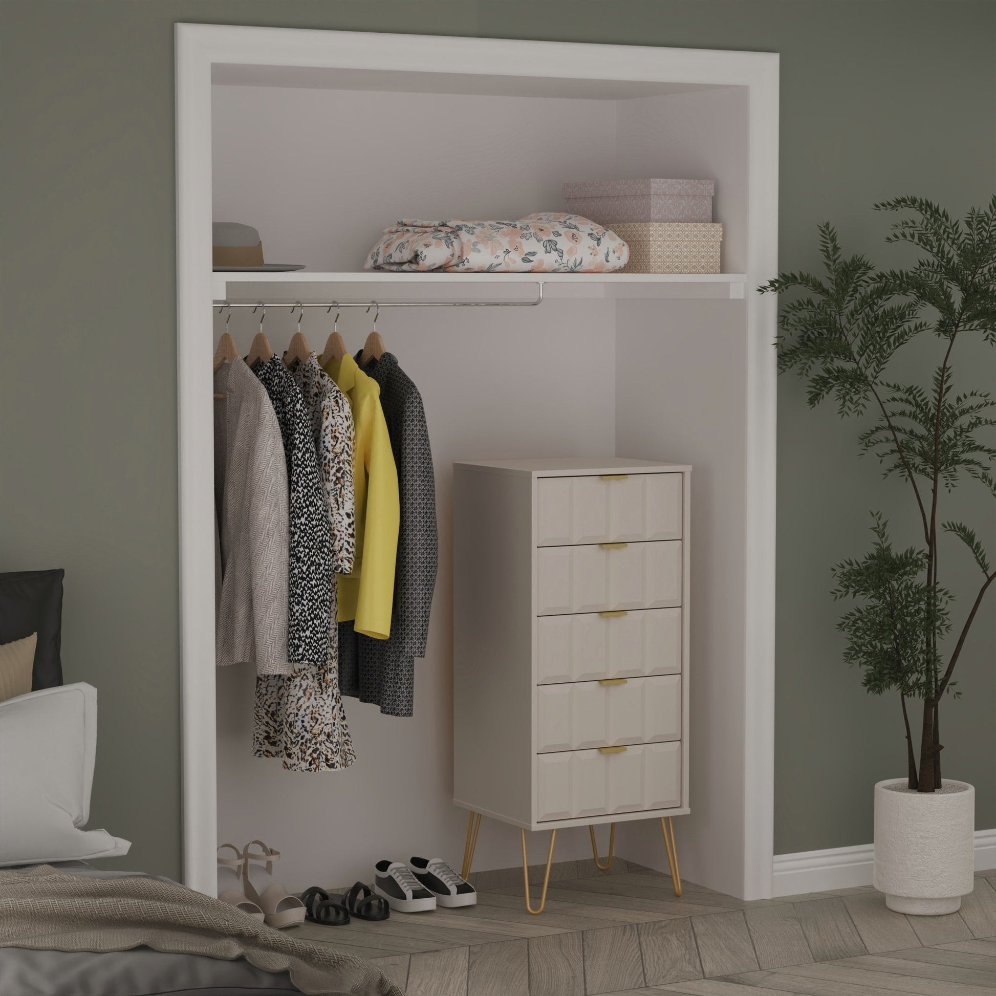 Cube Tall Tallboy Off-White 5 Drawers 109cm