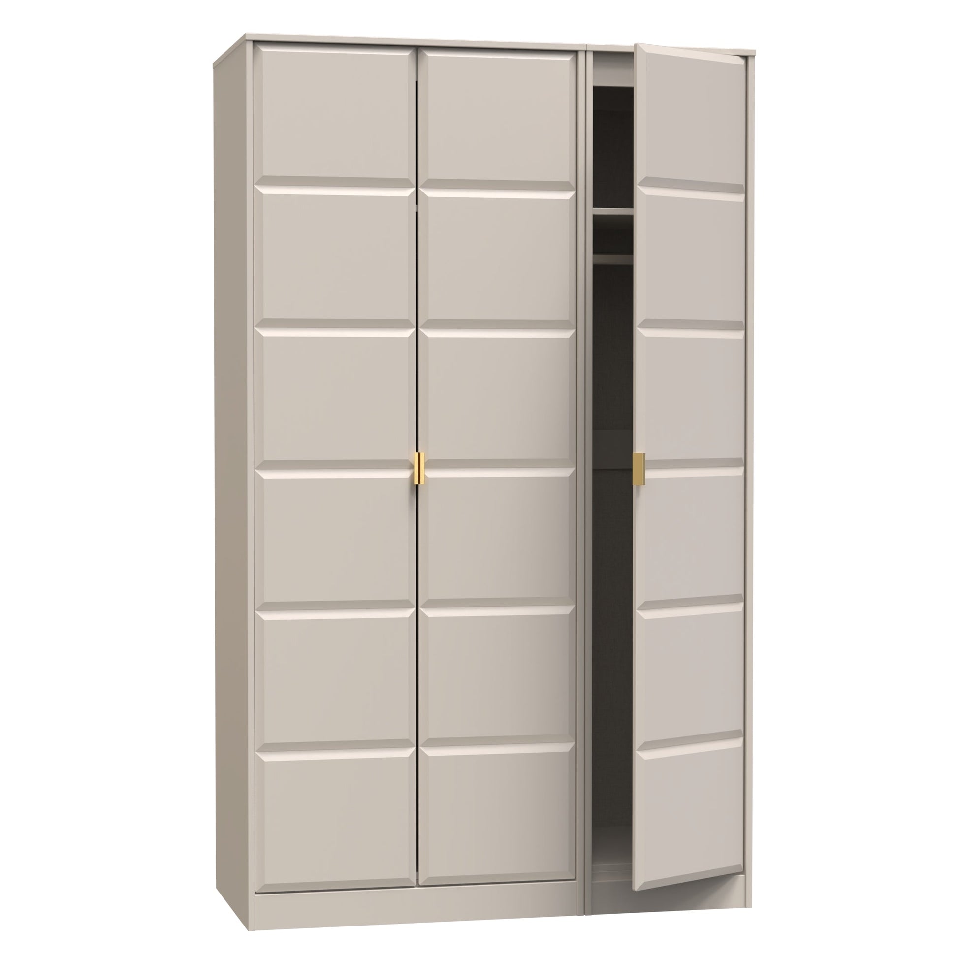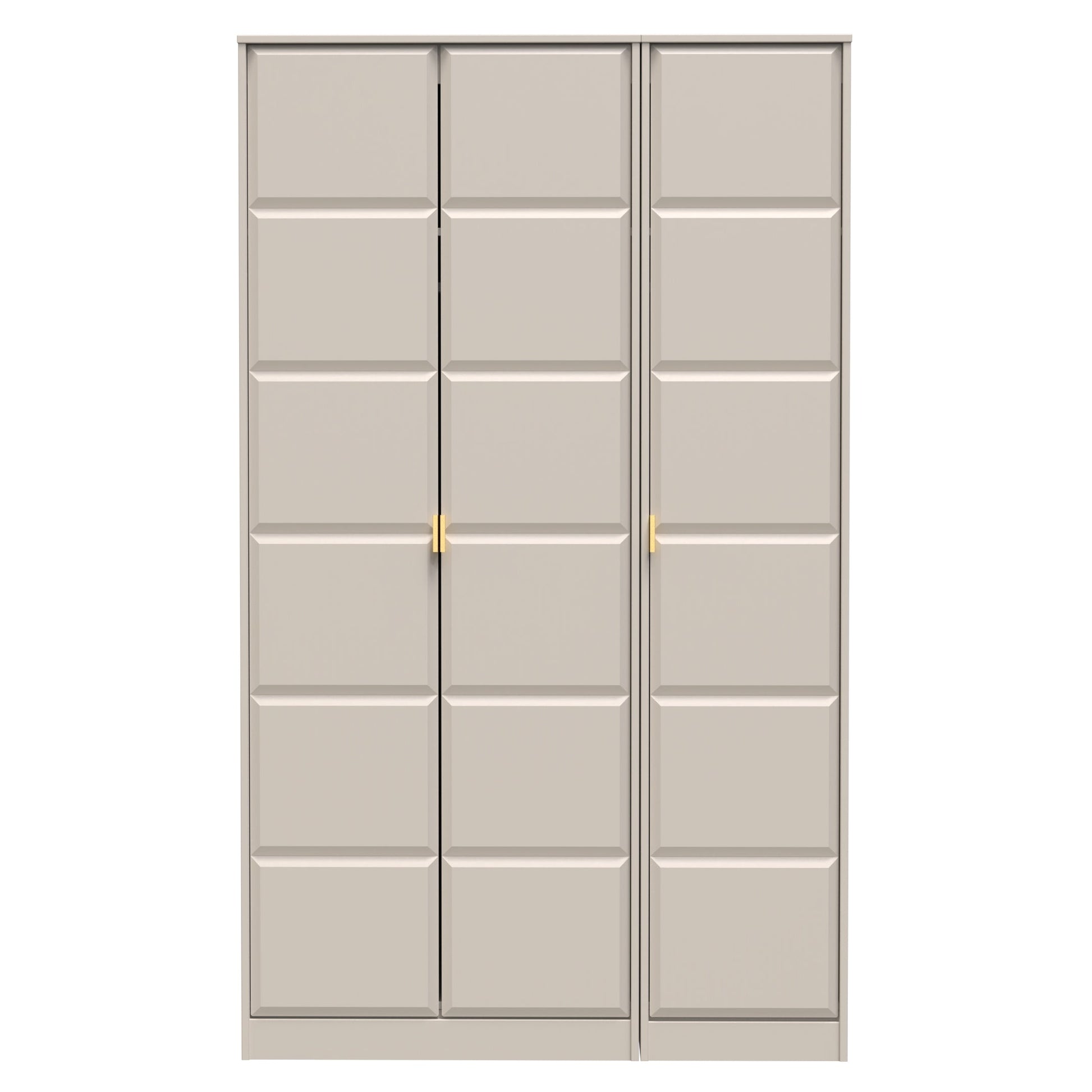 Cube Tall Wardrobe Off-White 3 Doors 1 Shelf 198cm