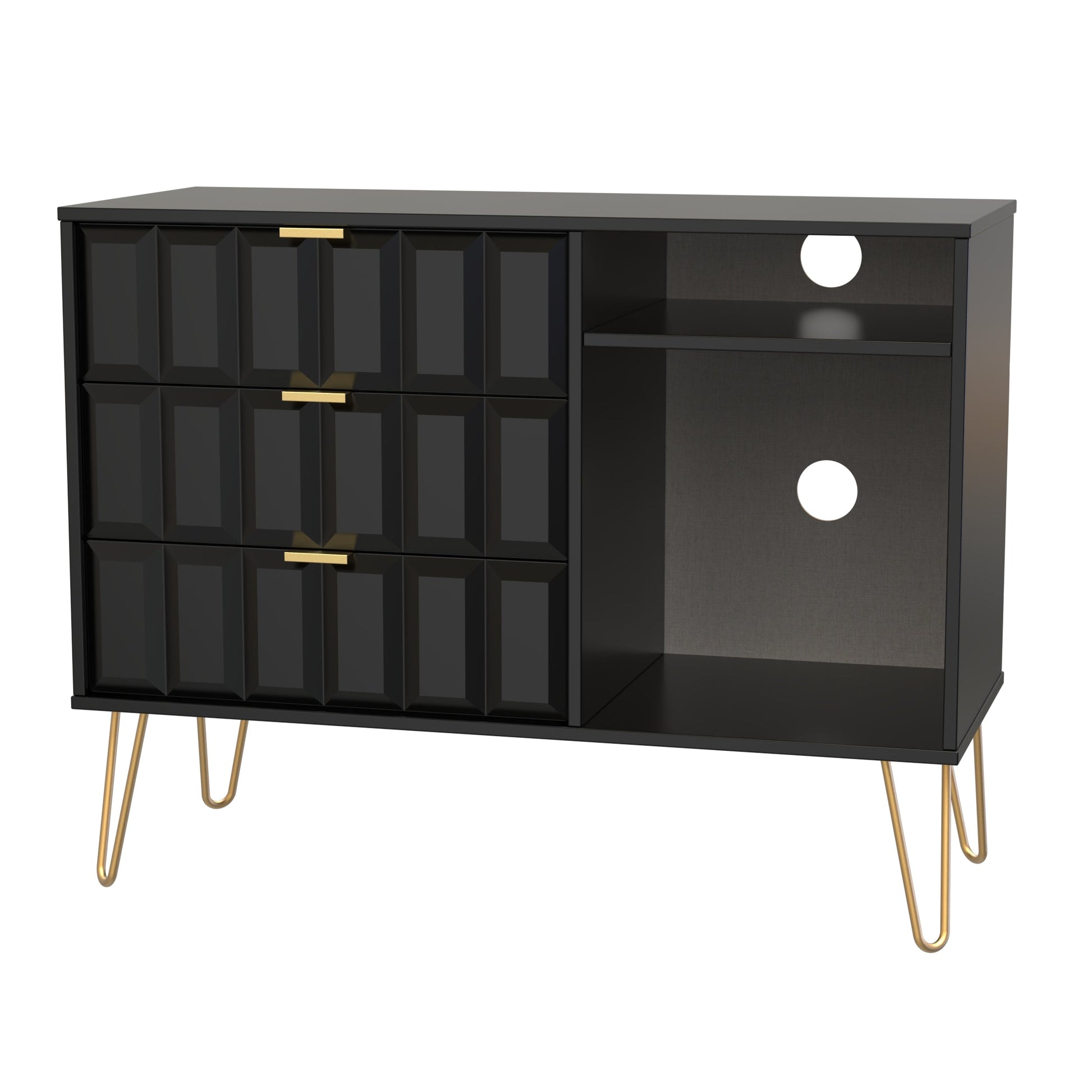Cube TV Unit Black 2 Shelves 3 Drawers 97cm